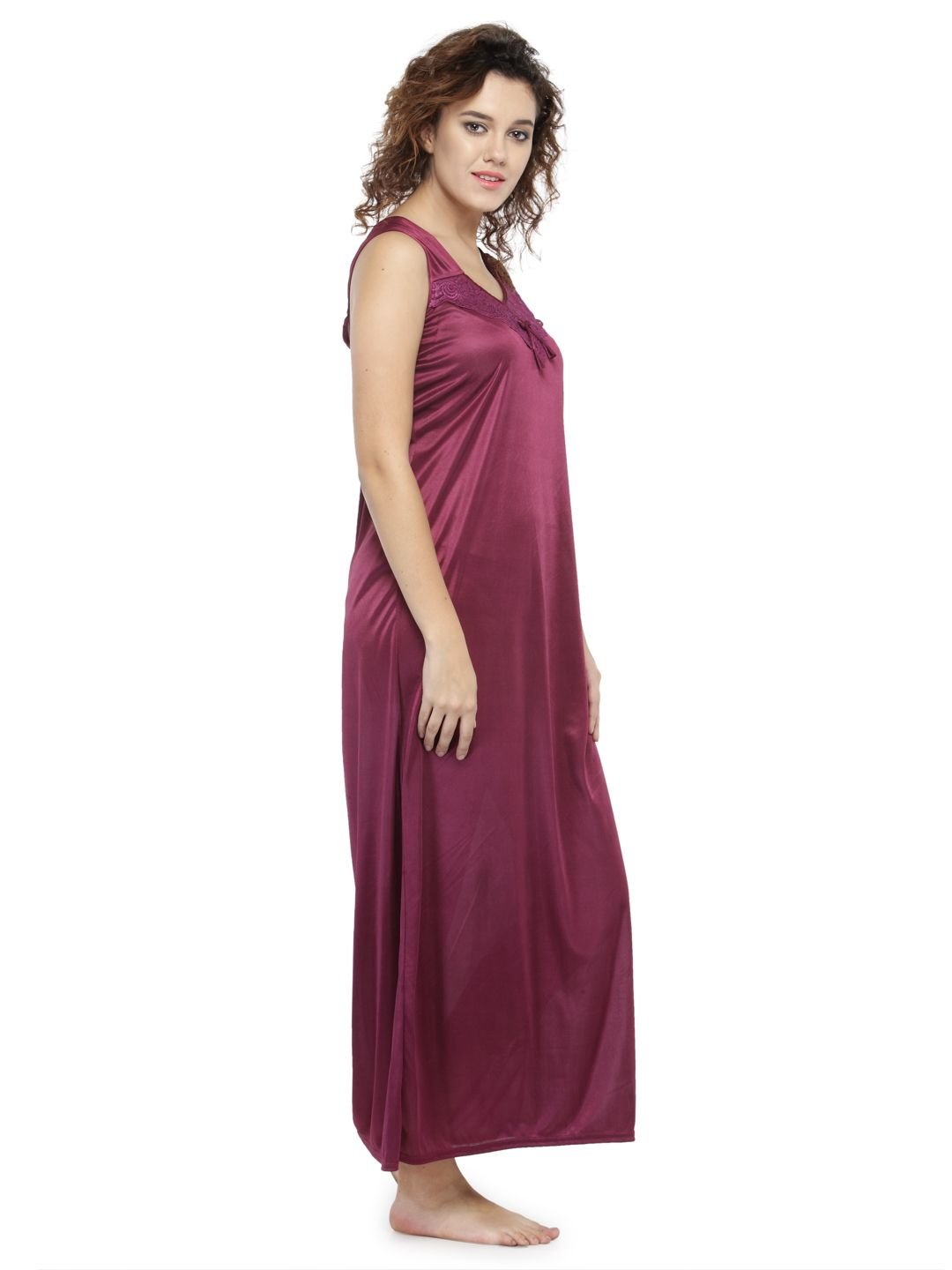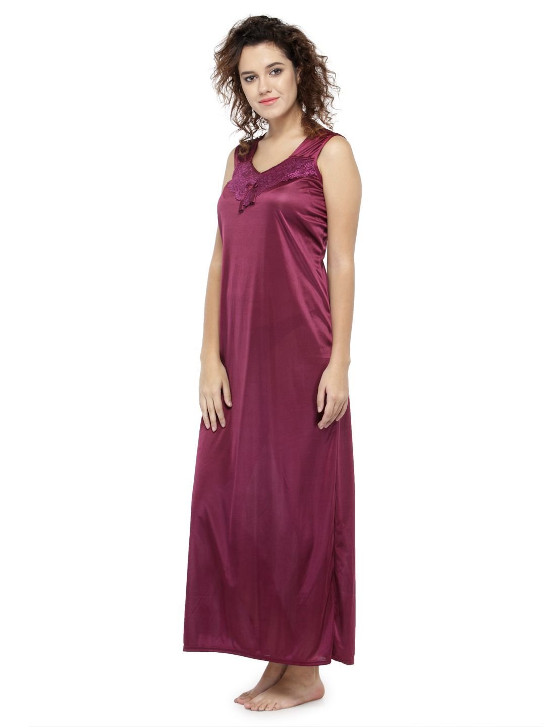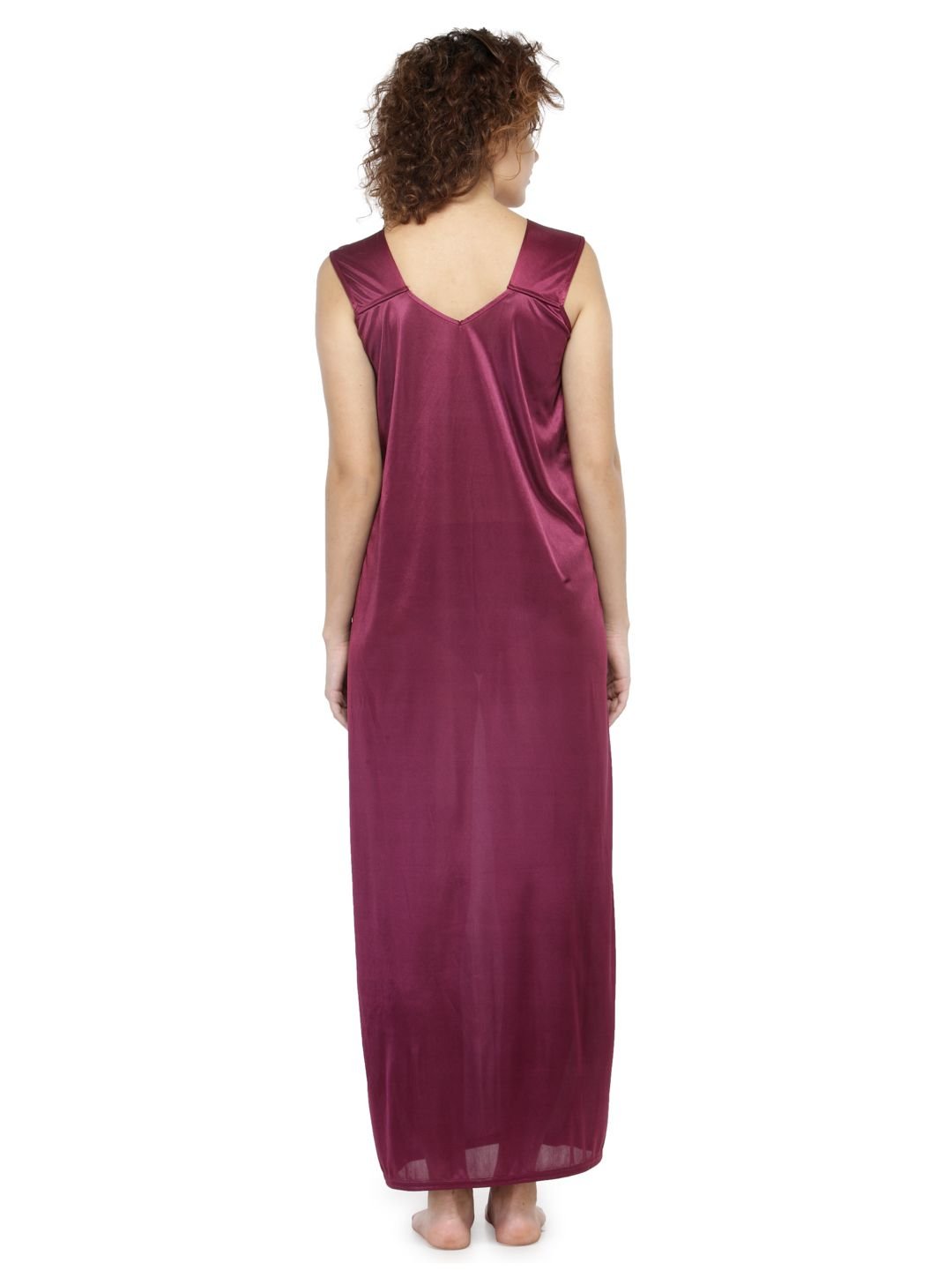 N-Gal Women's Satin Solid Wide Strap Satin Nighty Night Dress Nightwear_DarkMaroon
