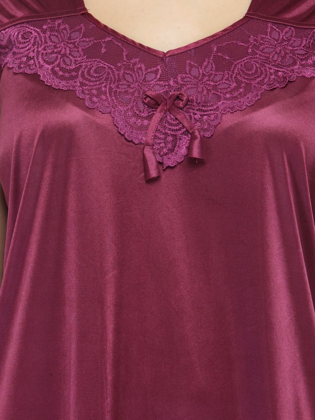 Designed to keep you comfortable while sleeping, this night dress is a must-have. With short sleeves and a soft material, it is sure to become your choicest.his Satin nighty has a frilled scoop neckline with laced details. This Satin nighty is a combination of comfort and luxury . This nightwear is an ideal choice for you, especially if you seek relaxation at night.