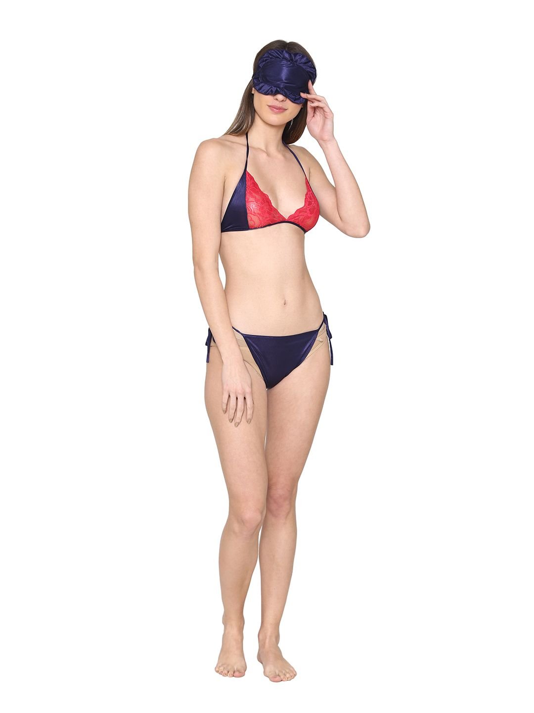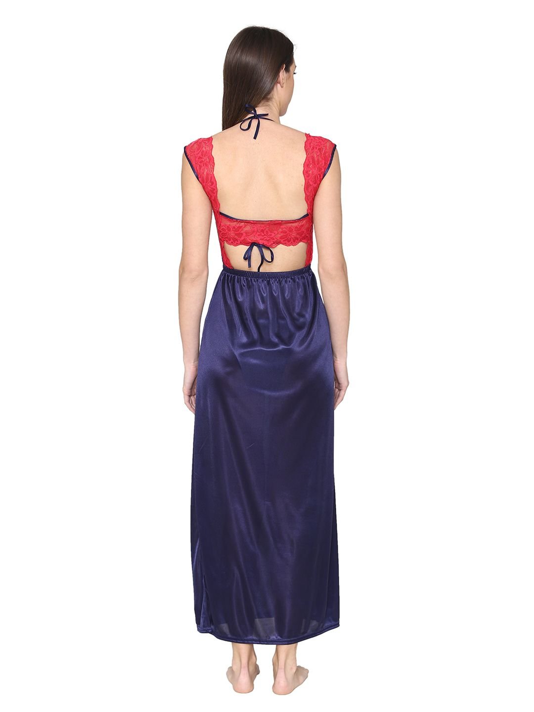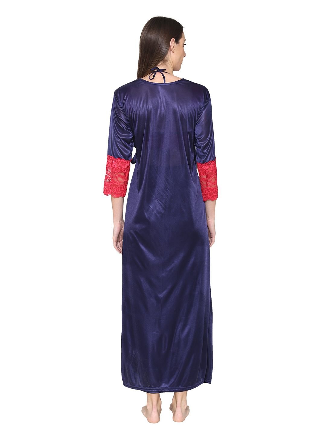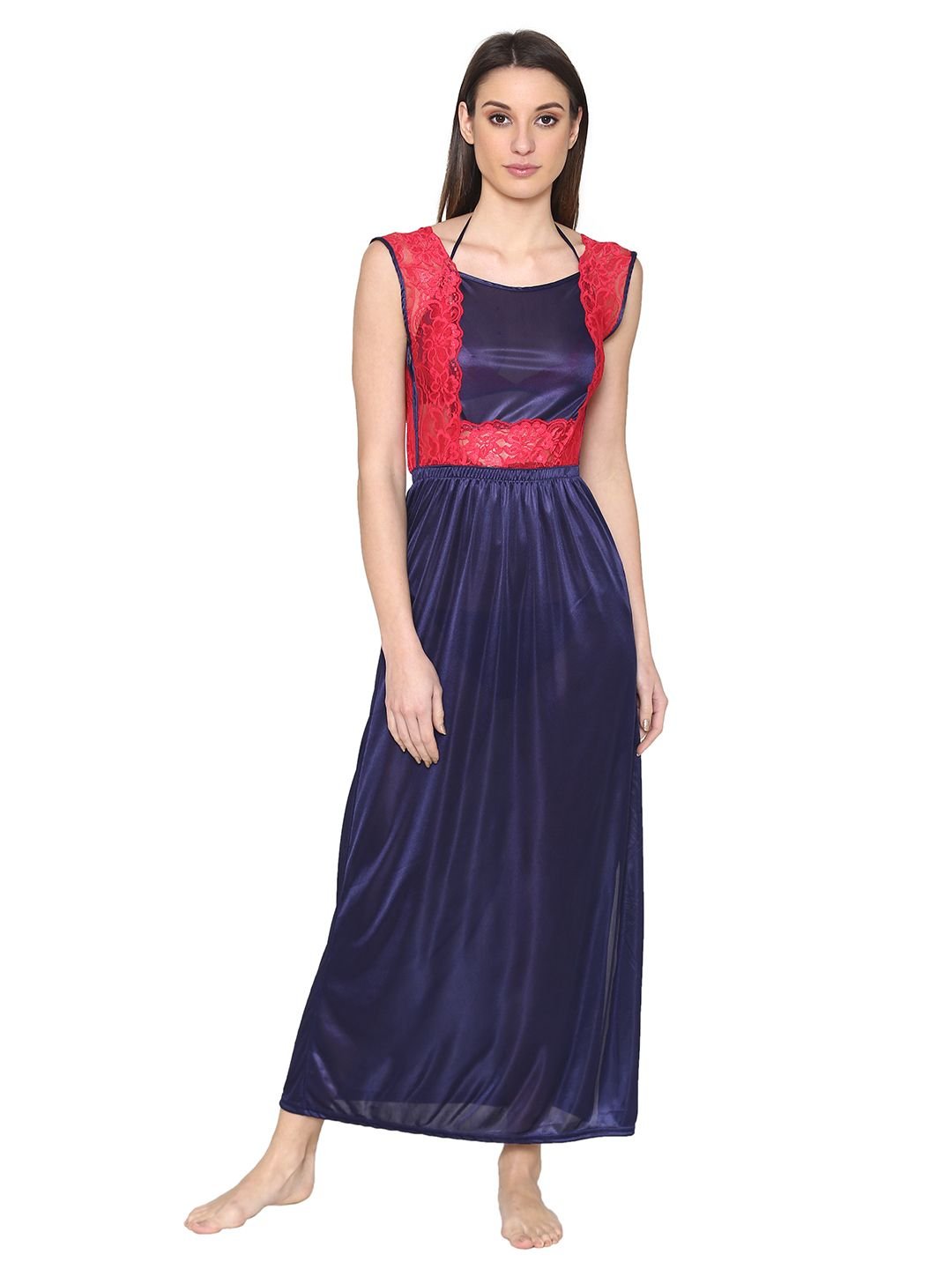 N-Gal Women's Satin Spandex Royal Lace Soft Nighty Lingerie Nightwear_Blue