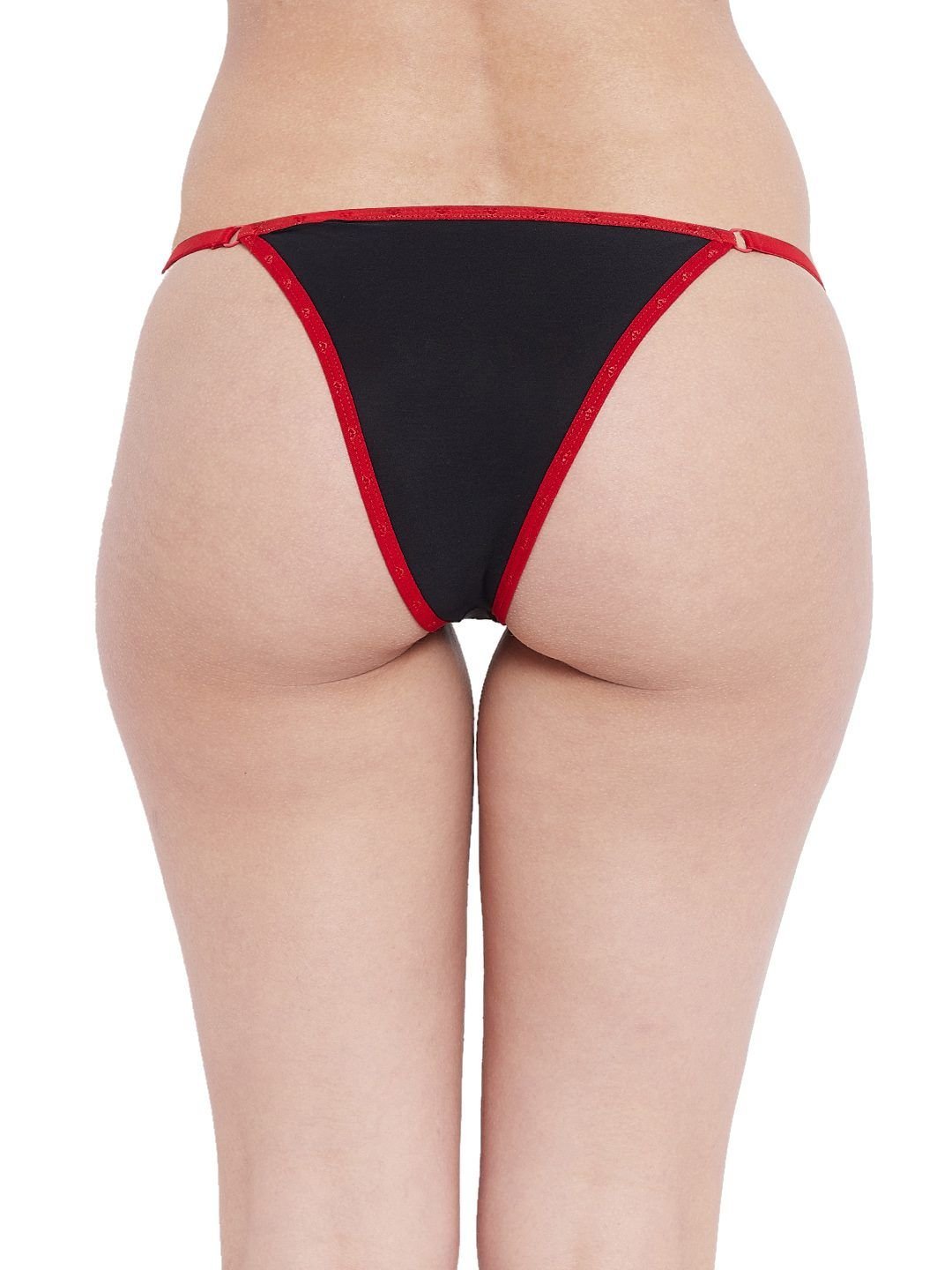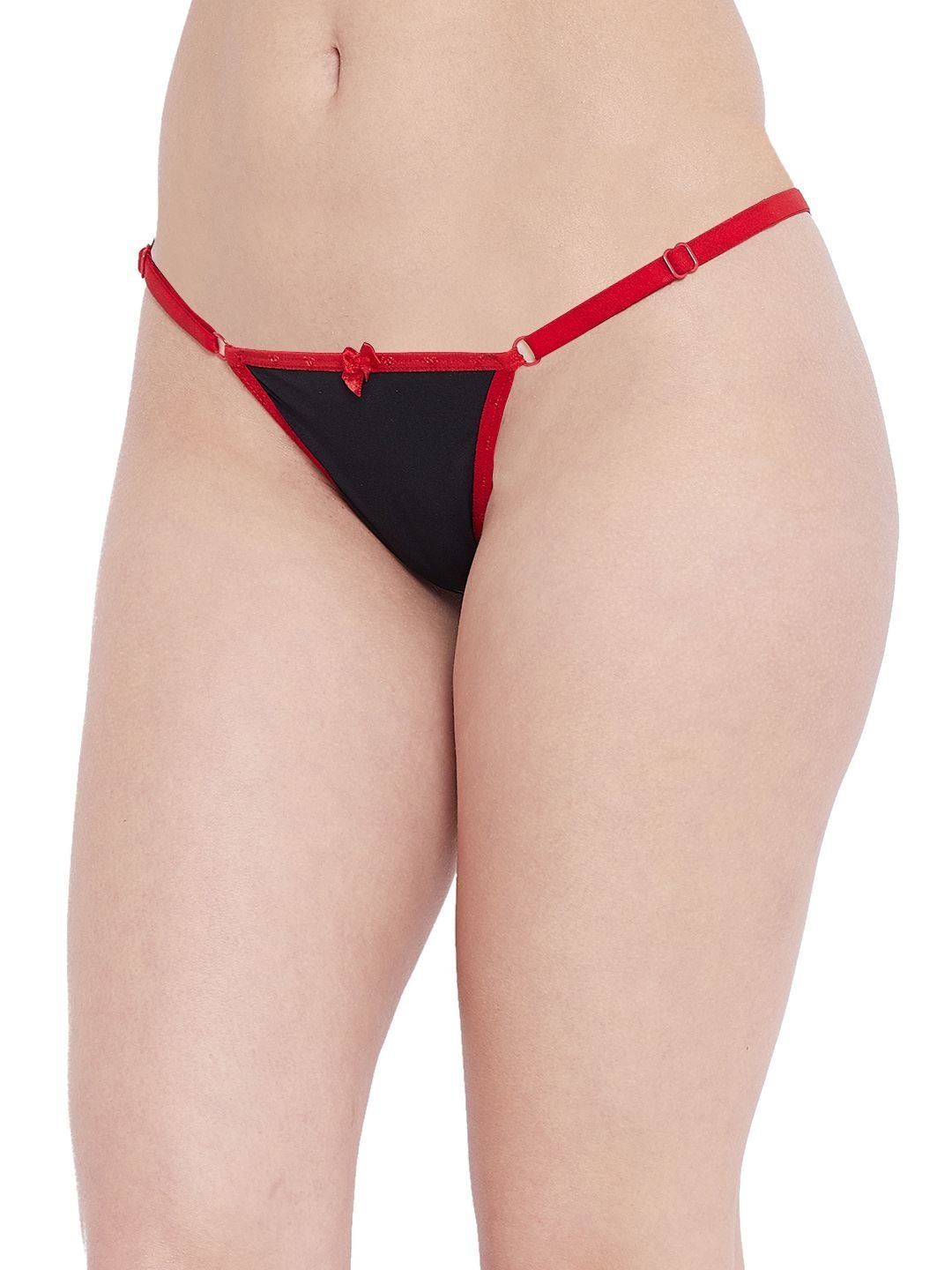N-Gal Women's Sheer Lace Cut Out Adjustable Waist Band G-String Thong Panty_Black