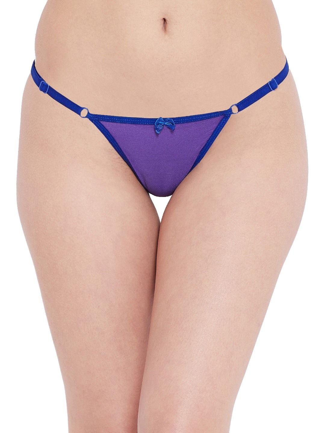 N-Gal Women's Sheer Lace Cut Out Adjustable Waist Band G-String Thong Panty_Blue