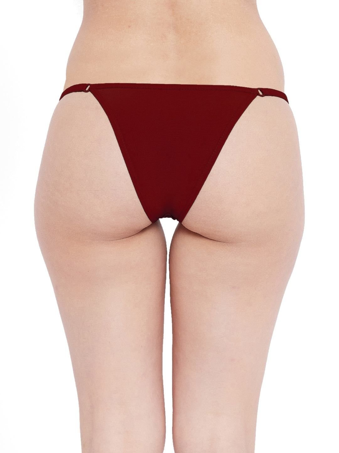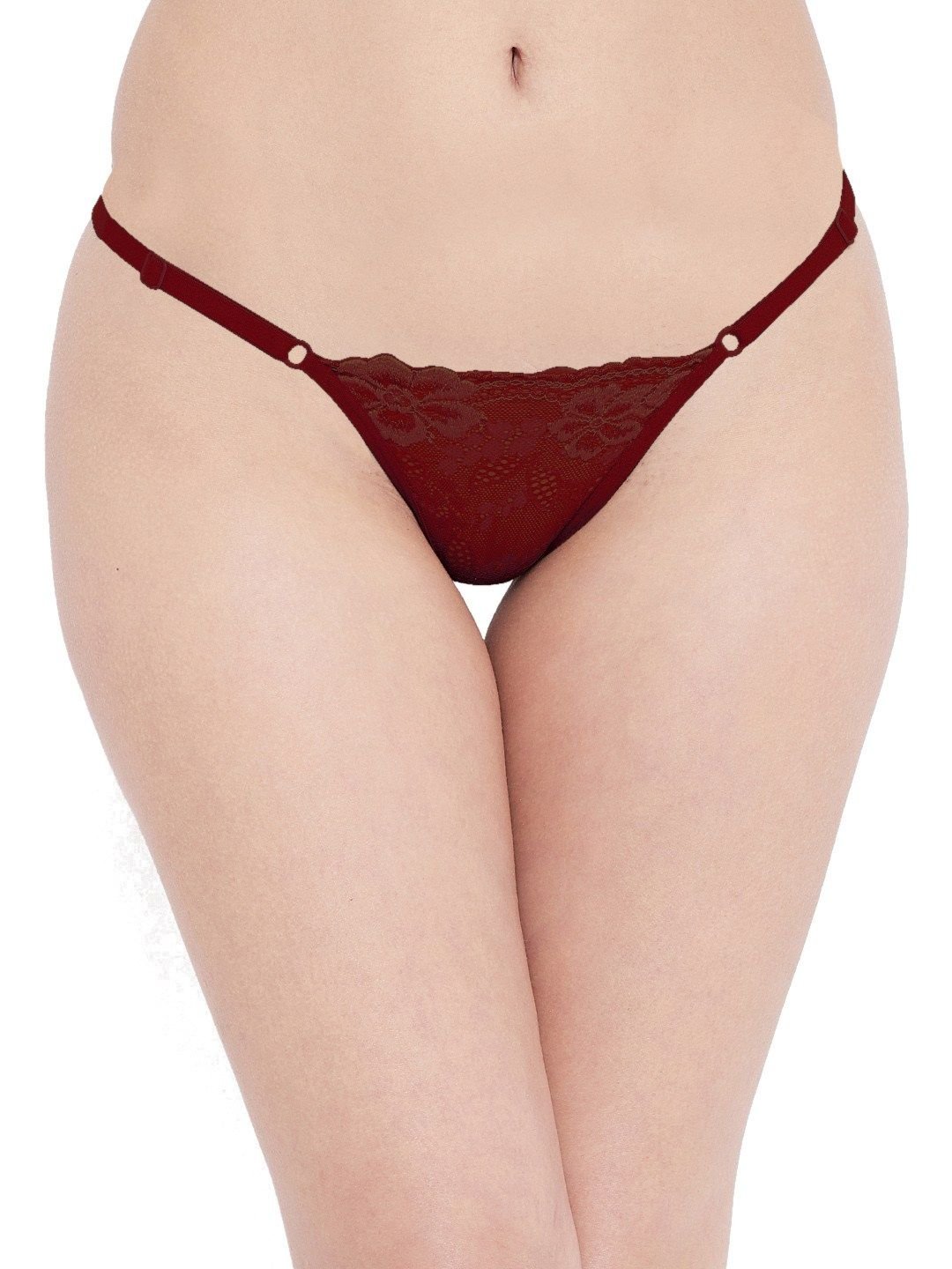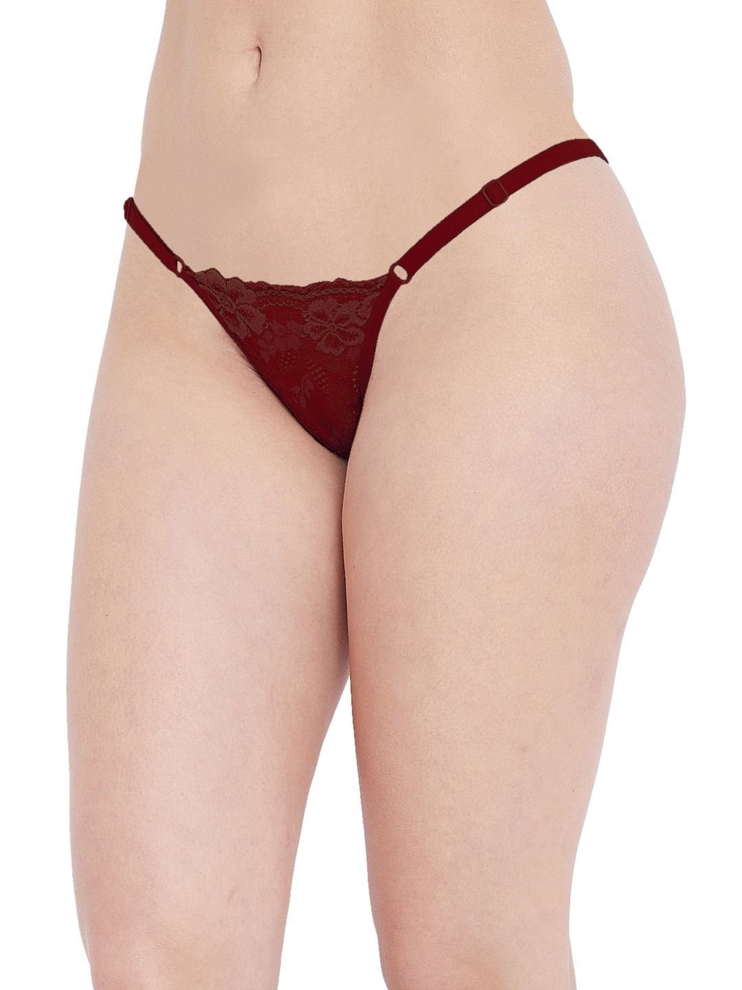N-Gal Women's Sheer Lace Cut Out Adjustable Waist Band G-String Thong Panty_Maroon