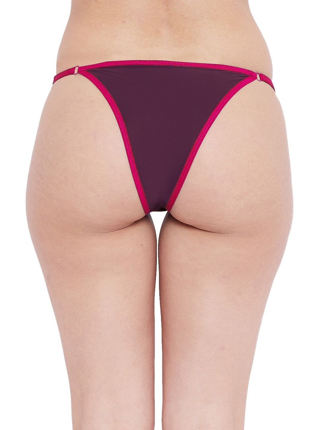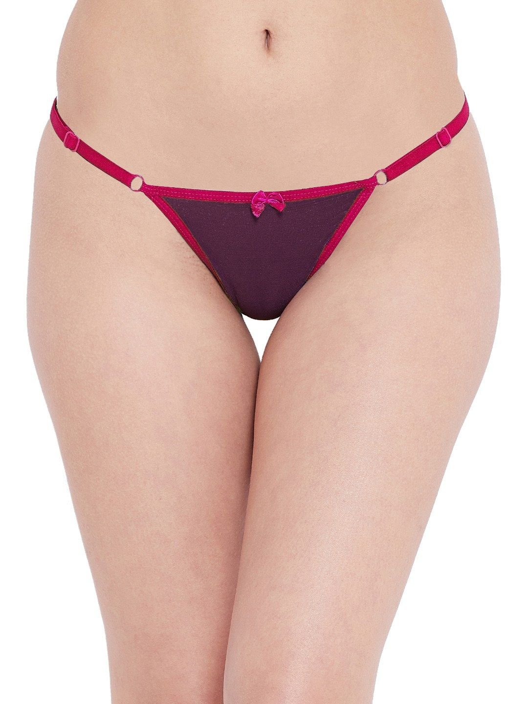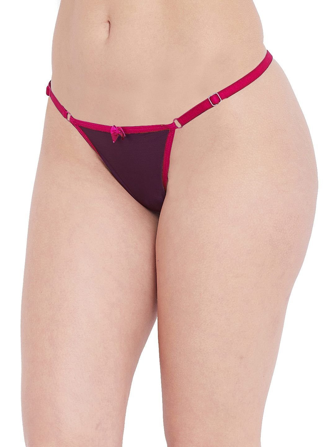 N-Gal Women's Sheer Lace Cut Out Adjustable Waist Band G-String Thong Panty_Pink