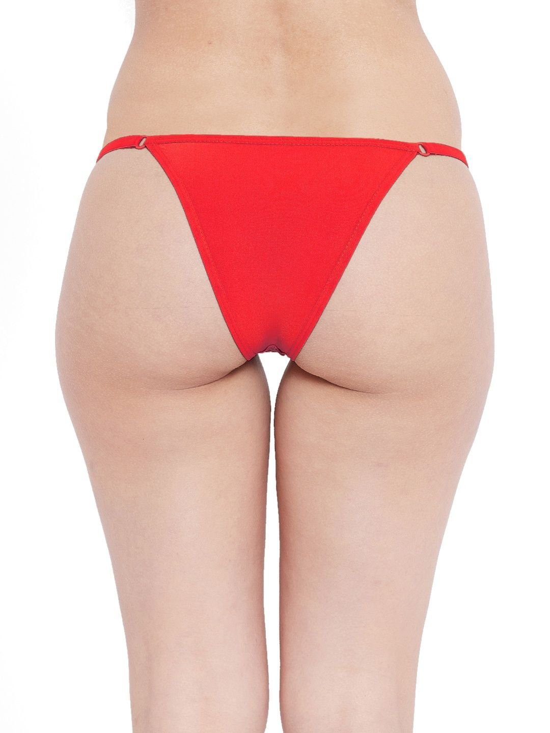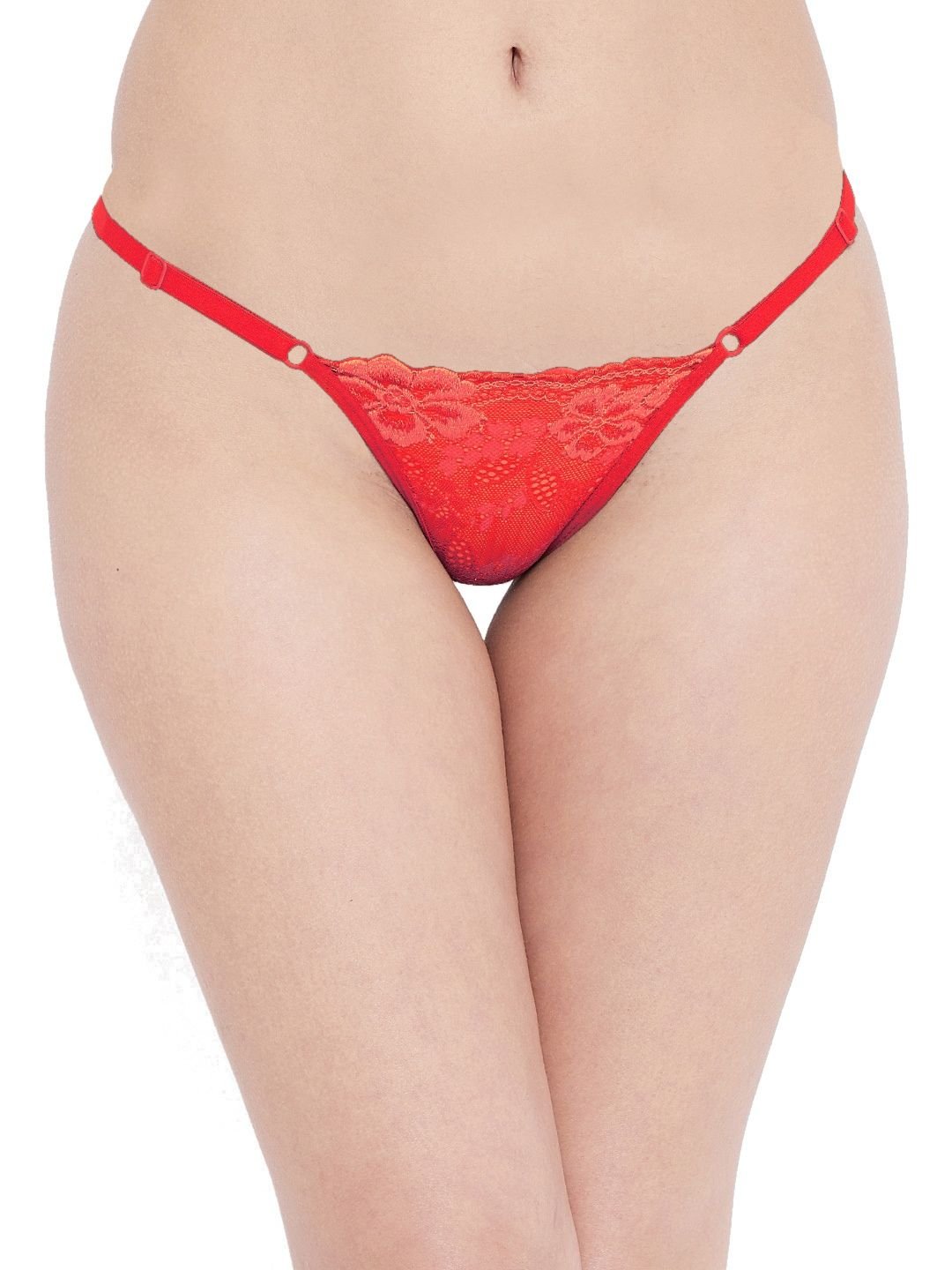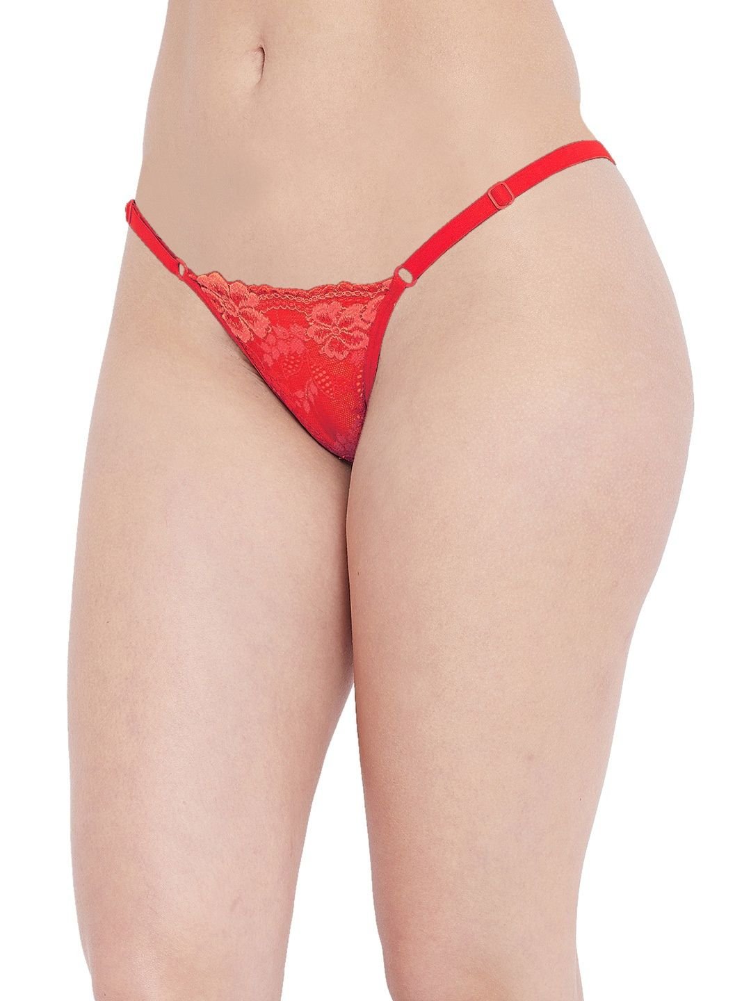 N-Gal Women's Sheer Lace Cut Out Adjustable Waist Band G-String Thong Panty_Red