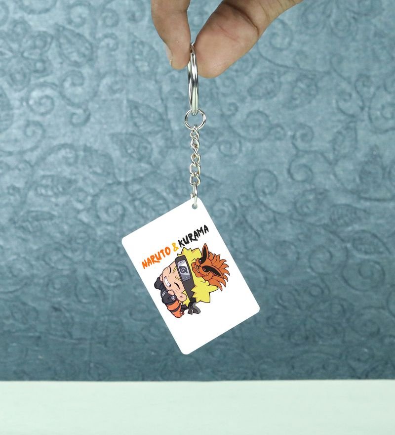 Naruto & Kurama Adventure Charm Printed White Anime Keychains Pack Of 2