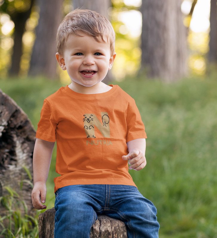 Naughty Nutria, Boys Round Neck Blended Cotton Tshirt (orange)