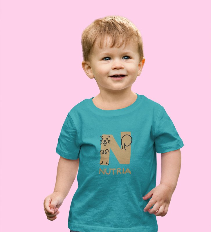 Naughty Nutria, Boys Round Neck Blended Cotton tshirt (teal)