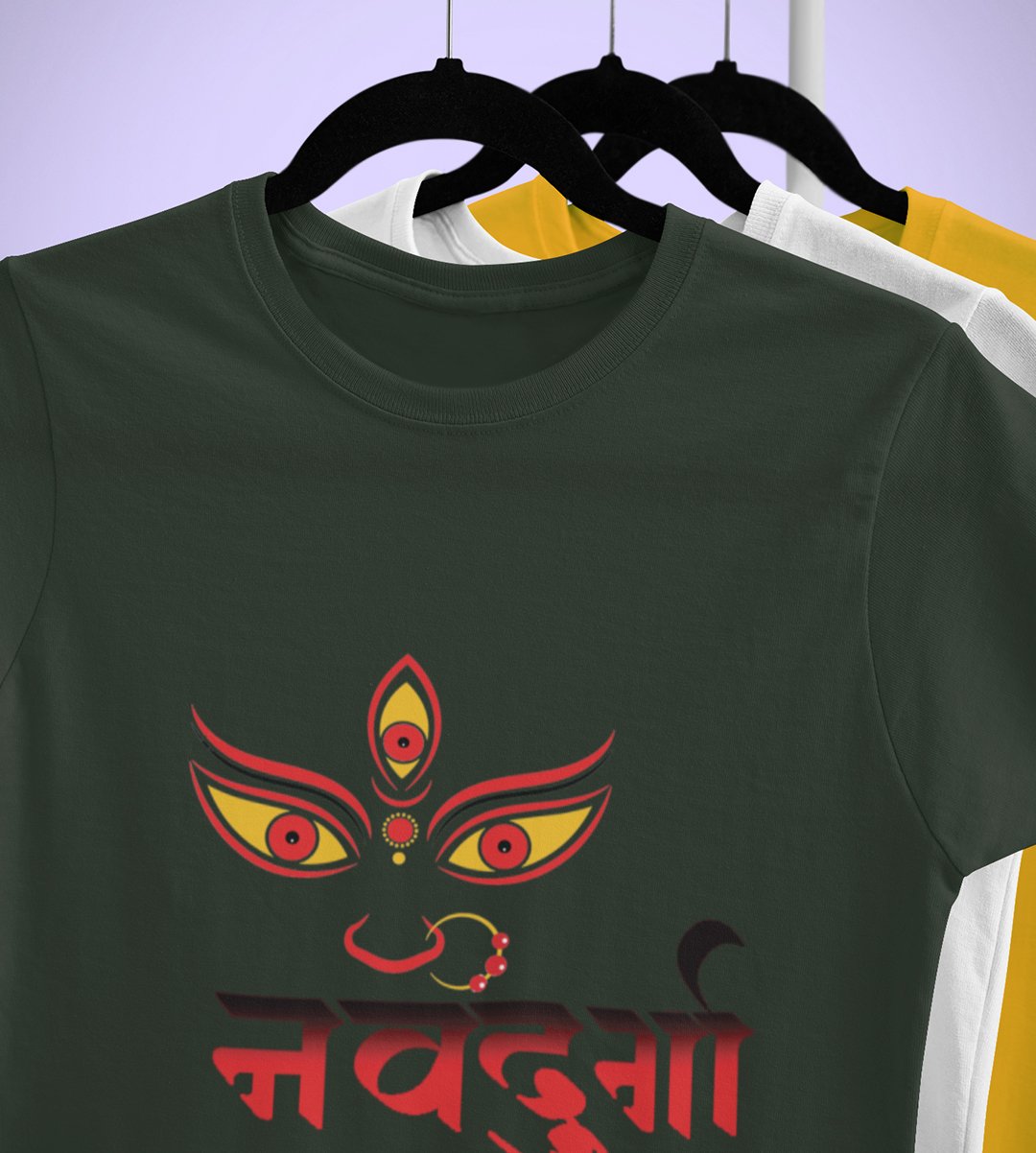 Navadurga printed unisex adults round neck cotton half-sleeve green tshirt specially for Navratri festival/ Durga puja