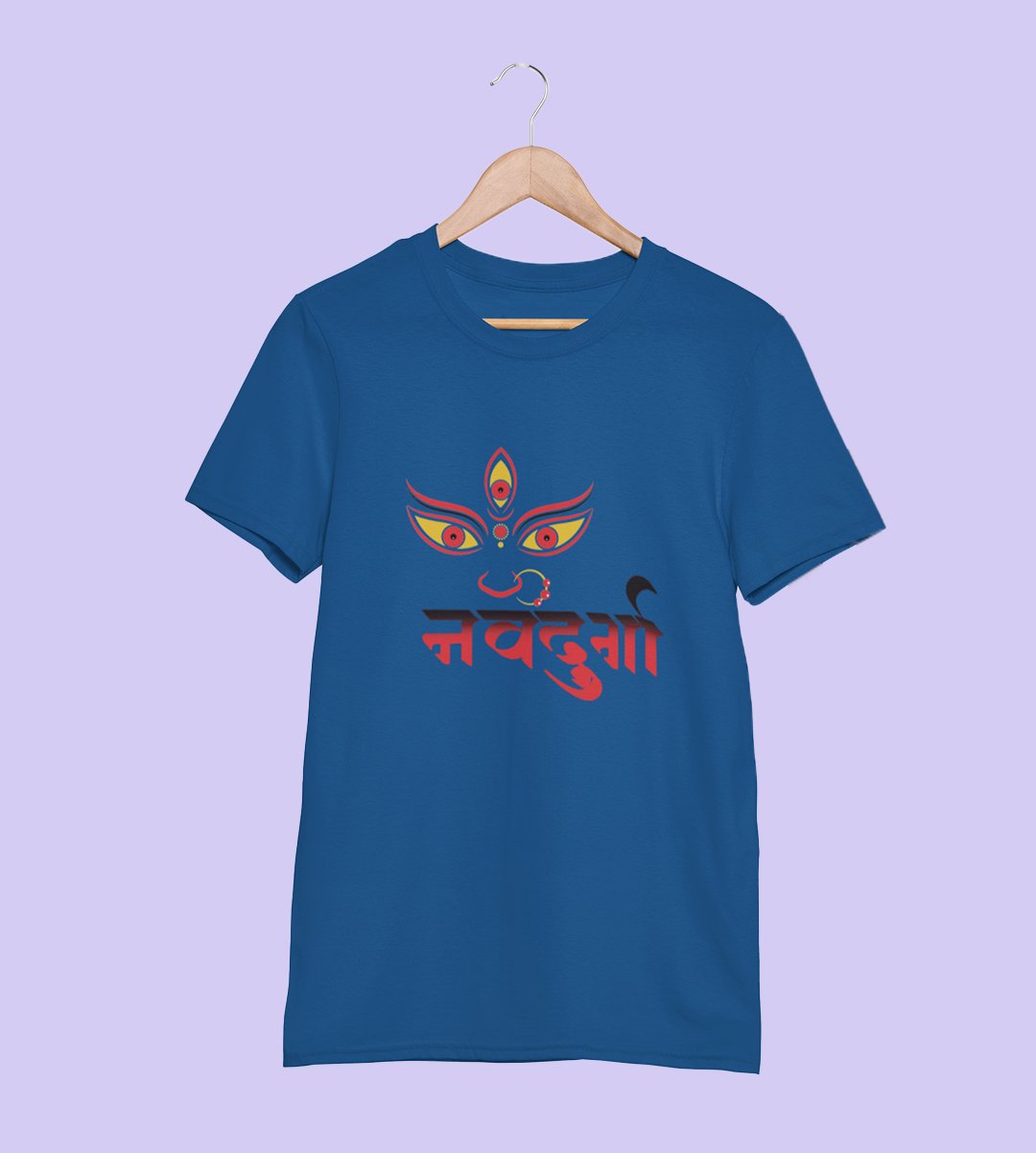 Navdurga printed unisex adults round neck cotton half-sleeve blue tshirt specially for Navratri festival/ Durga puja