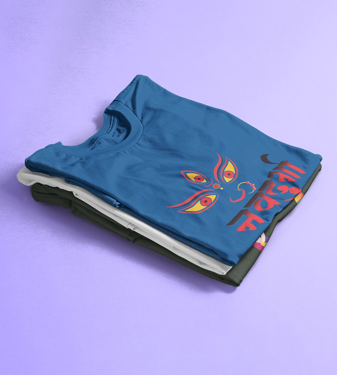 Navratri is a very auspicious festival for hindus. It takes place at the beginning of October and sometimes September. Enjoy the 9 days of festivities with full zeal and make yourself submerged in the love of Maa Durga. Navratri is also known as Durga Puja. And with this Tees, you can shine like a star during this festive season with our navratri themed cotton half sleeved Tshirts. You can pair our t-shirts with trousers and denim of your choice and make it a weekday smart casual or weekend wear. This is durable. This tshirt is smooth and soft which makes you comfortable to wear during all seasons. The printing in it is durable and odourless. It has five sizes, S,M,L,XL,XXL. The Tshirt colour is intact even after repeated washes. It can be kept in your wardrobe and hangers. Please avoid washing mashine to clean this Tee, it may affect the print. Hand wash only. We have brought you many navratri related designs printed on our different colour Tshirts to choose from. Grab it now.