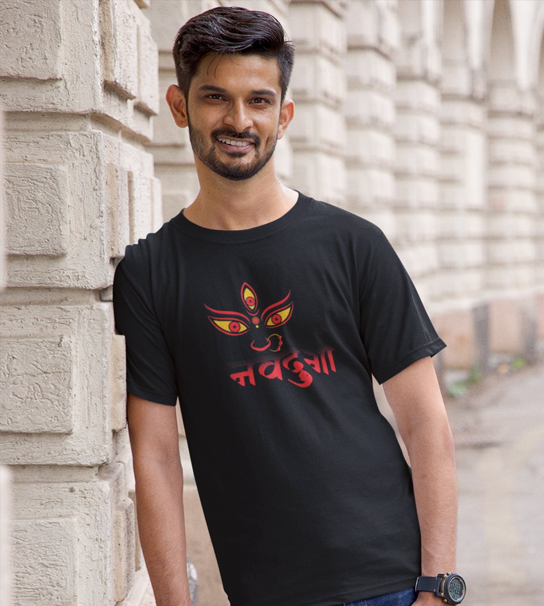 Navo Durga printed unisex adults round neck cotton half-sleeve black tshirt specially for Navratri festival/ Durga puja