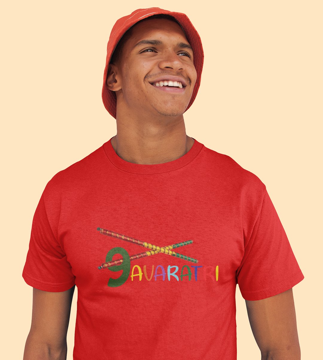 Navratri is a very auspicious festival for hindus. It takes place at the beginning of October and sometimes September. Enjoy the 9 days of festivities with full zeal and make yourself submerged in the love of Maa Durga. Navratri is also known as Durga Puja. And with this Tees, you can shine like a star during this festive season with our navratri themed cotton half sleeved Tshirts. You can pair our t-shirts with trousers and denim of your choice and make it a weekday smart casual or weekend wear. This is durable. This tshirt is smooth and soft which makes you comfortable to wear during all seasons. The printing in it is durable and odourless. It has five sizes, S,M,L,XL,XXL. The Tshirt colour is intact even after repeated washes. It can be kept in your wardrobe and hangers. Please avoid washing mashine to clean this Tee, it may affect the print. Hand wash only. We have brought you many navratri related designs printed on our different colour Tshirts to choose from. Grab it now.