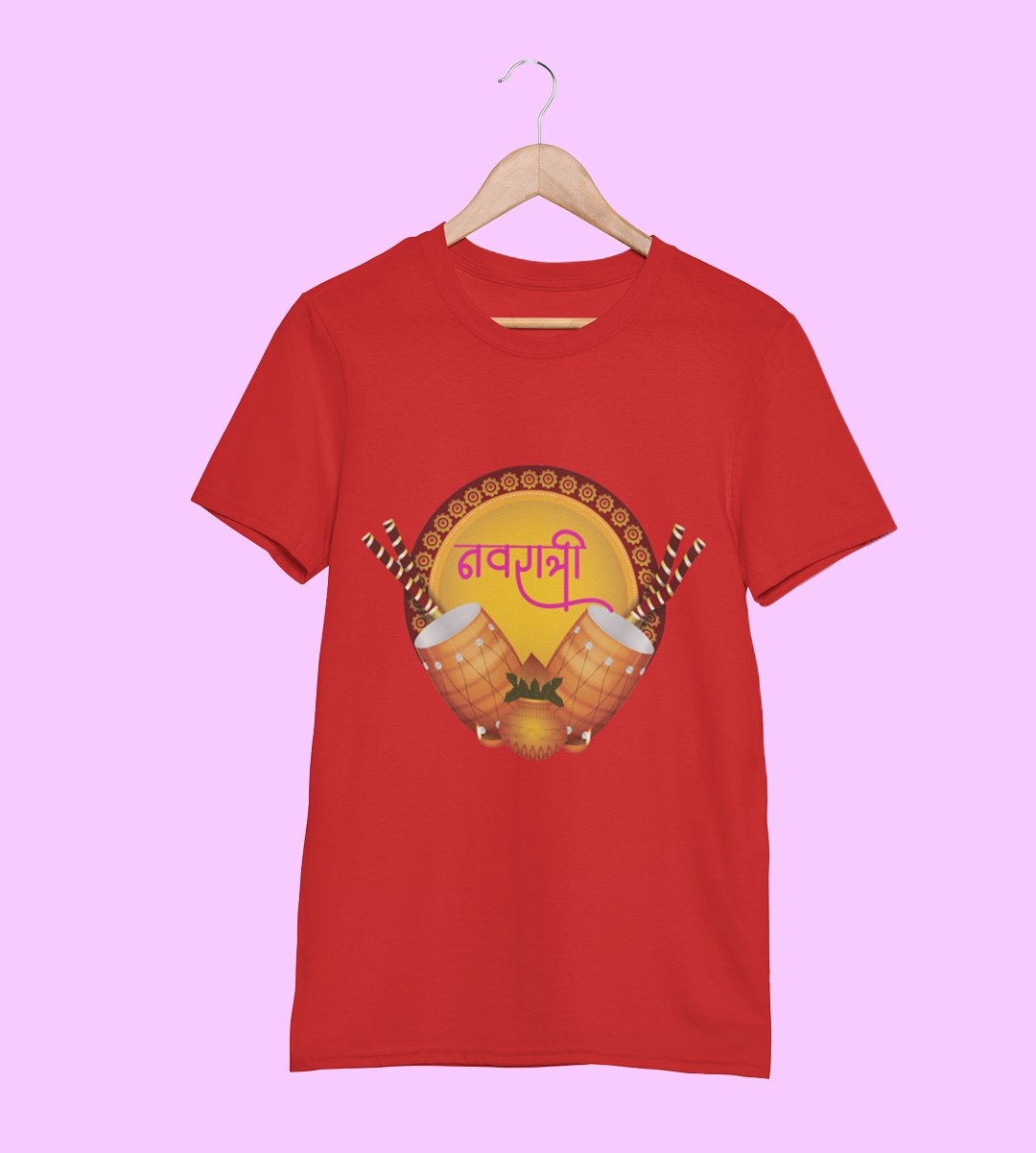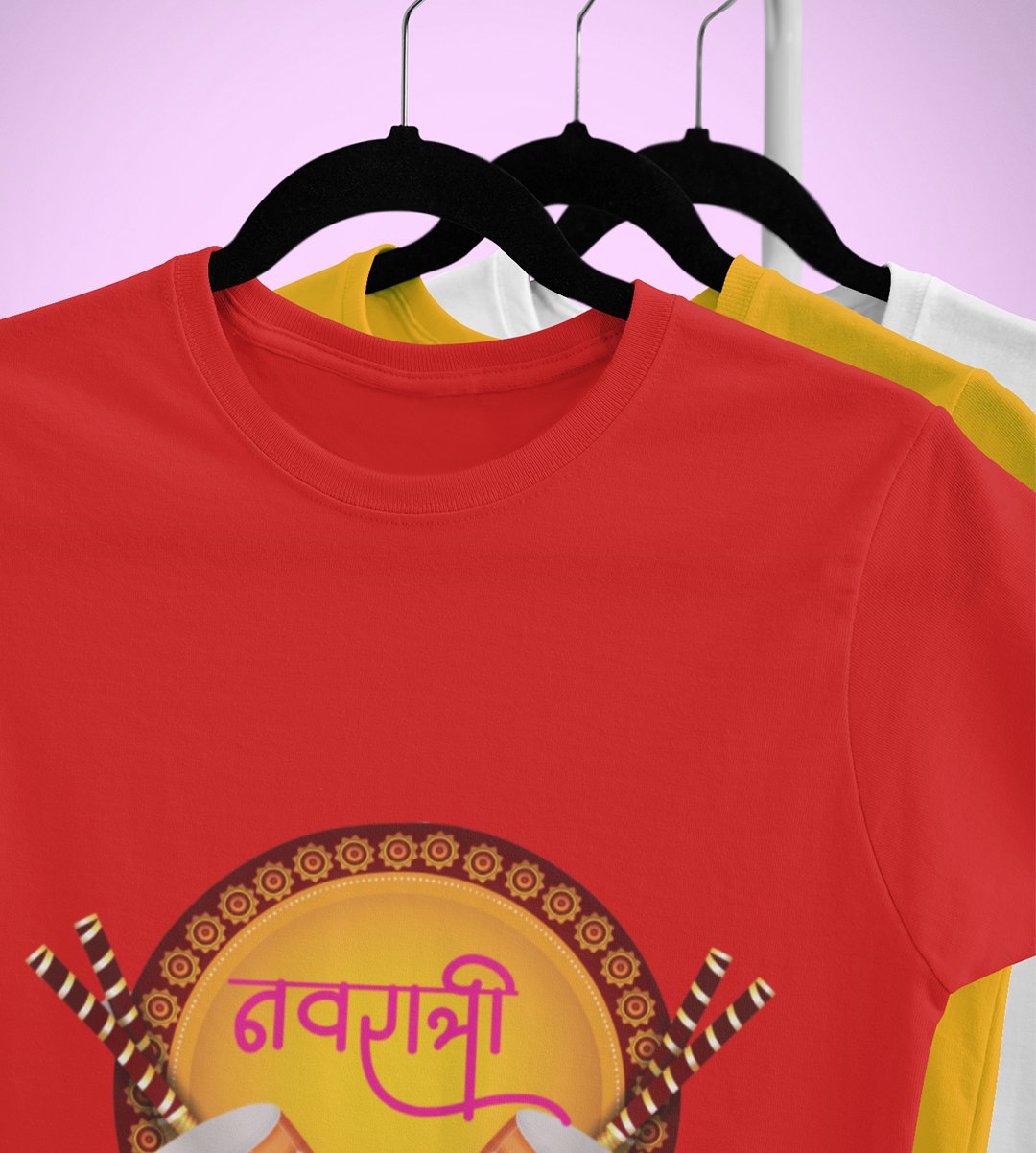 Navratri is a very auspicious festival for hindus. It takes place at the beginning of October and sometimes September. Enjoy the 9 days of festivities with full zeal and make yourself submerged in the love of Maa Durga. Navratri is also known as Durga Puja. And with this Tees, you can shine like a star during this festive season with our navratri themed cotton half sleeved Tshirts. You can pair our t-shirts with trousers and denim of your choice and make it a weekday smart casual or weekend wear. This is durable. This tshirt is smooth and soft which makes you comfortable to wear during all seasons. The printing in it is durable and odourless. It has five sizes, S,M,L,XL,XXL. The Tshirt colour is intact even after repeated washes. It can be kept in your wardrobe and hangers. Please avoid washing mashine to clean this Tee, it may affect the print. Hand wash only. We have brought you many navratri related designs printed on our different colour Tshirts to choose from. Grab it now.