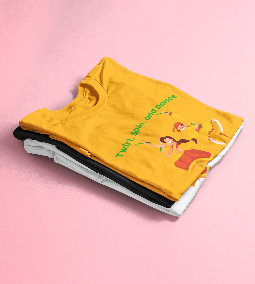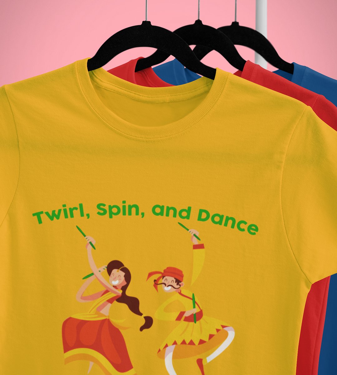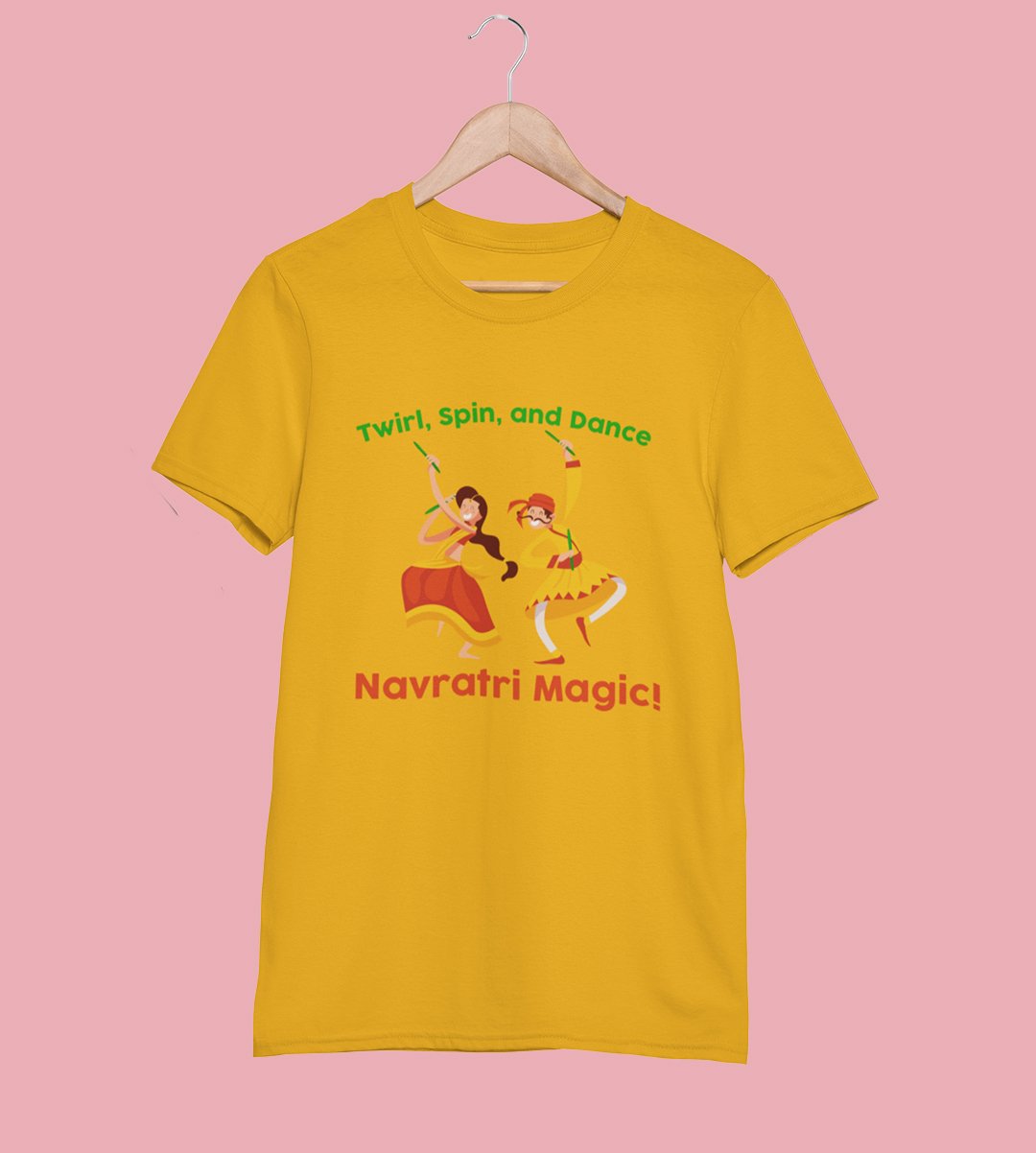 Navratri magic printed unisex adults round neck cotton half-sleeve yellow tshirt specially for Navratri festival/ Durga puja