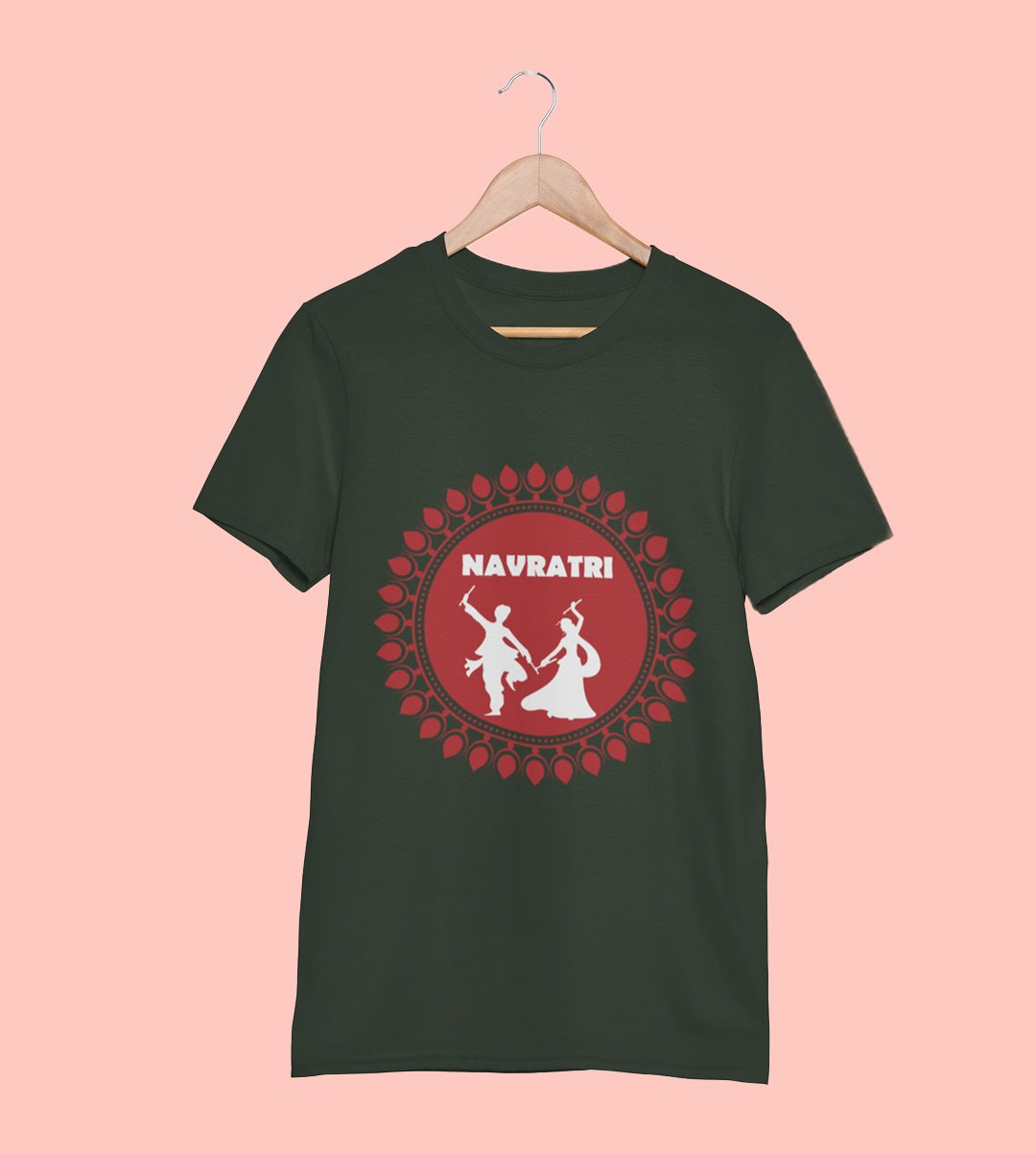 Navratri (Red) printed unisex adults round neck cotton half-sleeve green tshirt specially for Navratri festival/ Durga puja