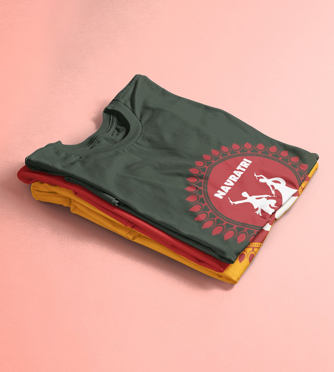 Navratri is a very auspicious festival for hindus. It takes place at the beginning of October and sometimes September. Enjoy the 9 days of festivities with full zeal and make yourself submerged in the love of Maa Durga. Navratri is also known as Durga Puja. And with this Tees, you can shine like a star during this festive season with our navratri themed cotton half sleeved Tshirts. You can pair our t-shirts with trousers and denim of your choice and make it a weekday smart casual or weekend wear. This is durable. This tshirt is smooth and soft which makes you comfortable to wear during all seasons. The printing in it is durable and odourless. It has five sizes, S,M,L,XL,XXL. The Tshirt colour is intact even after repeated washes. It can be kept in your wardrobe and hangers. Please avoid washing mashine to clean this Tee, it may affect the print. Hand wash only. We have brought you many navratri related designs printed on our different colour Tshirts to choose from. Grab it now.