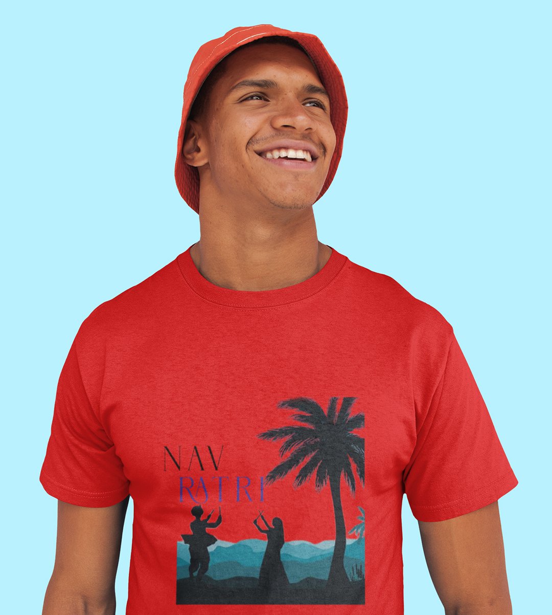 Navratri is a very auspicious festival for hindus. It takes place at the beginning of October and sometimes September. Enjoy the 9 days of festivities with full zeal and make yourself submerged in the love of Maa Durga. Navratri is also known as Durga Puja. And with this Tees, you can shine like a star during this festive season with our navratri themed cotton half sleeved Tshirts. You can pair our t-shirts with trousers and denim of your choice and make it a weekday smart casual or weekend wear. This is durable. This tshirt is smooth and soft which makes you comfortable to wear during all seasons. The printing in it is durable and odourless. It has five sizes, S,M,L,XL,XXL. The Tshirt colour is intact even after repeated washes. It can be kept in your wardrobe and hangers. Please avoid washing mashine to clean this Tee, it may affect the print. Hand wash only. We have brought you many navratri related designs printed on our different colour Tshirts to choose from. Grab it now.
