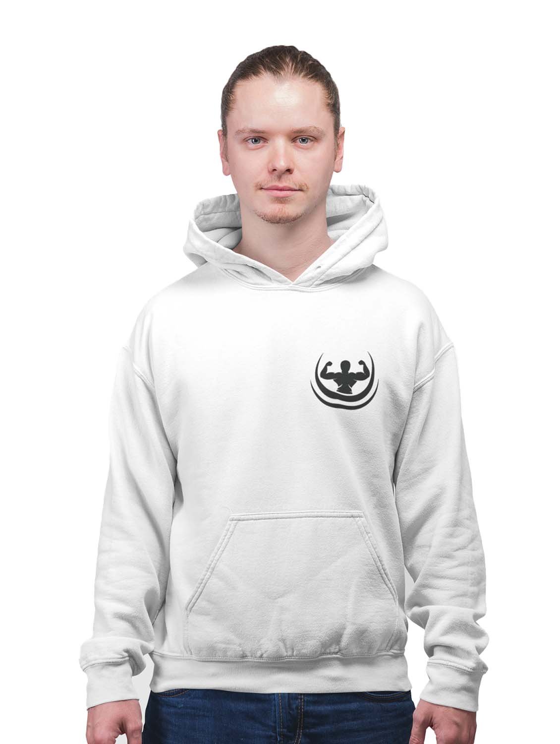Never Give Up, Muscle Man(Yellow) printed artswear white hoodies for winter casual wear specially for Men