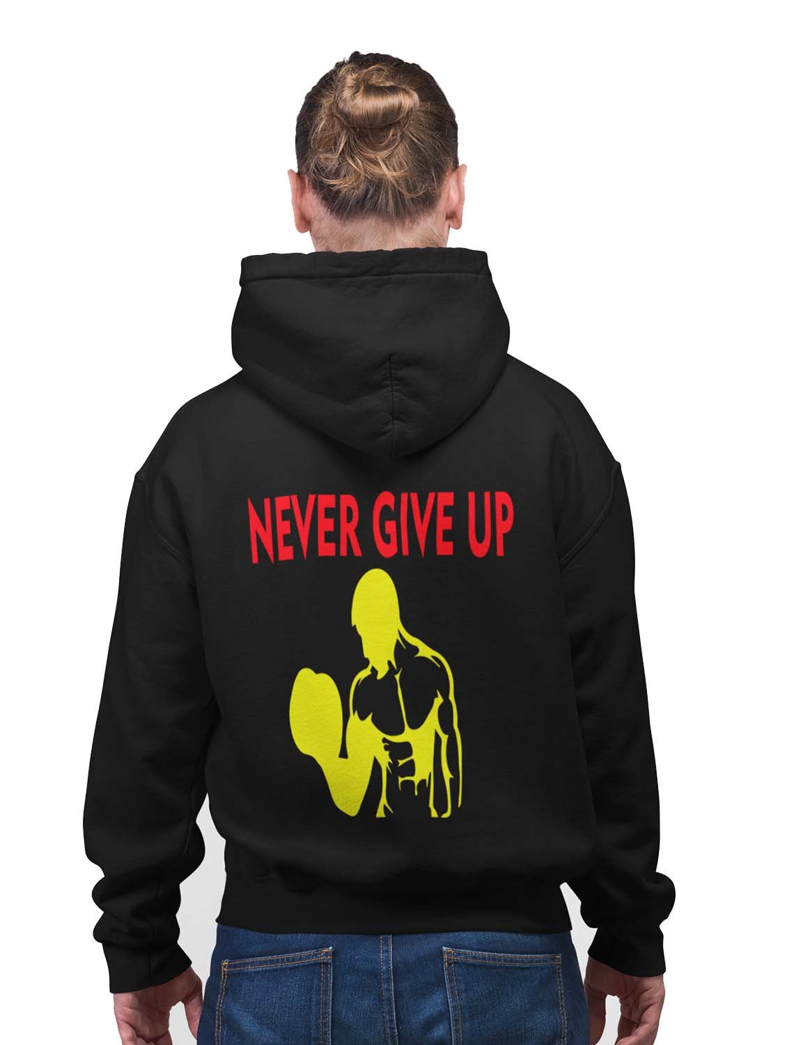 Never Give Up printed artswear black hoodies for winter casual wear specially for Men