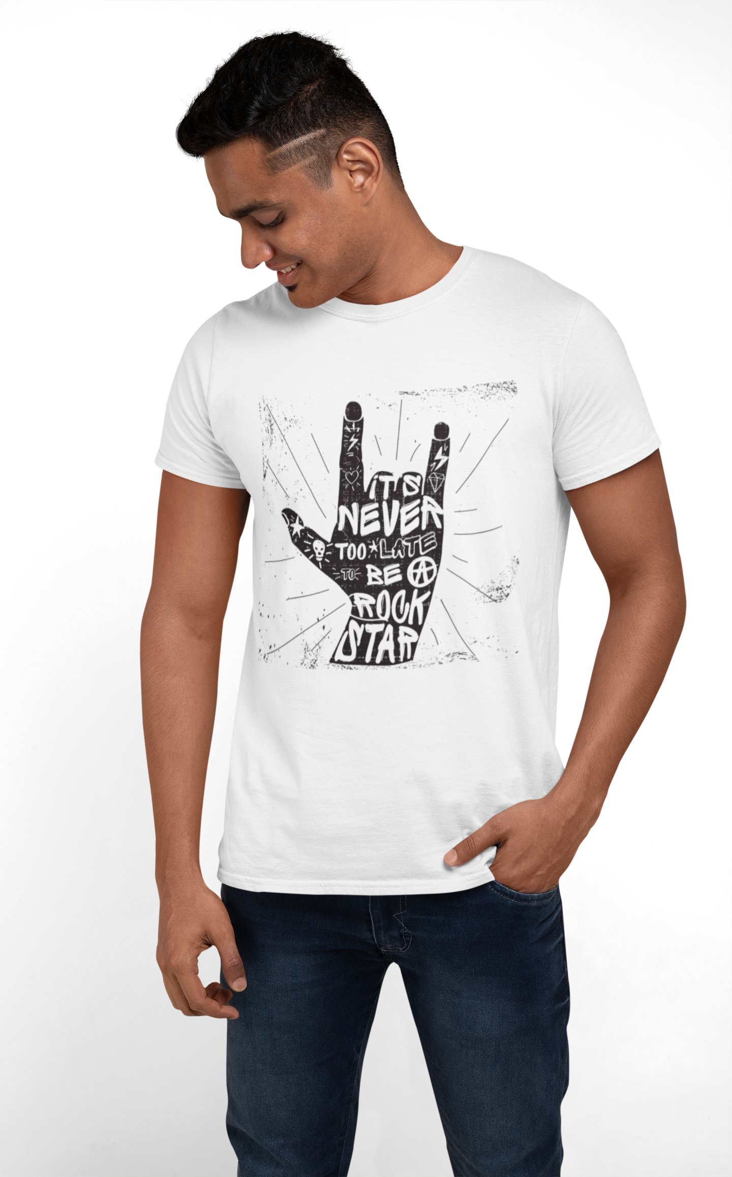 Never too late be rock star- printed Fun and lovely - Family things - Comfy tees for Men