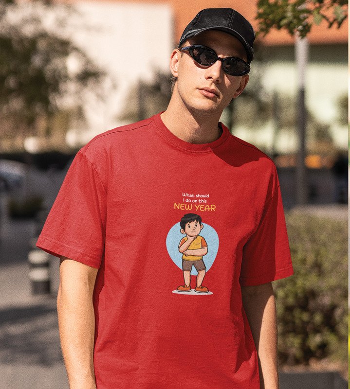 New Year Dance Red Printed T-shirt For Mens On New Year Theme Best Gift For New Year