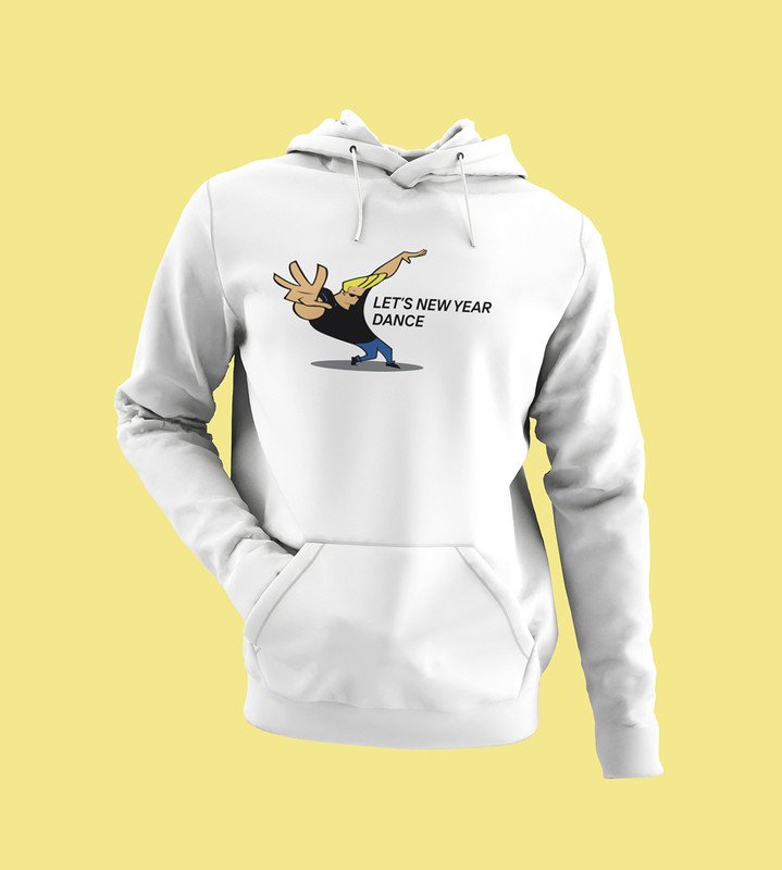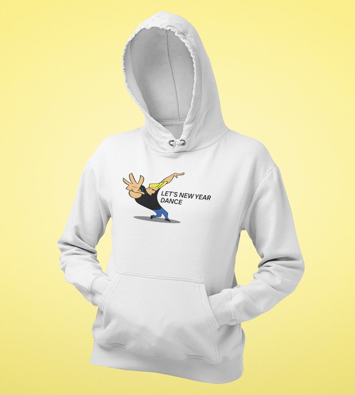 New Year Dance, White Printed Hoodies For Mens On New Year Theme Best Gift For New Year