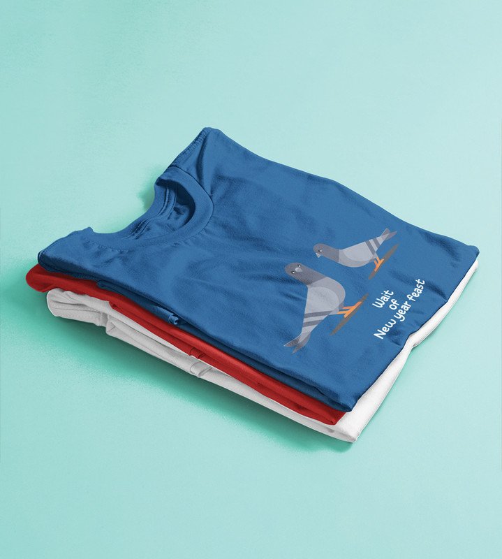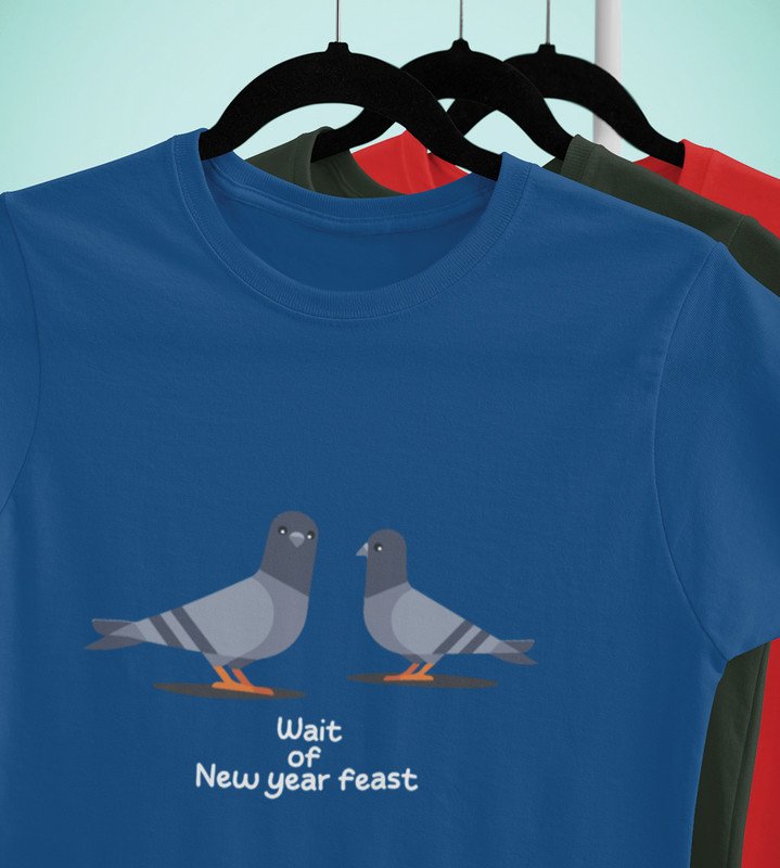 New Year Feast Blue Graphic Printed T-shirt For Mens Boys