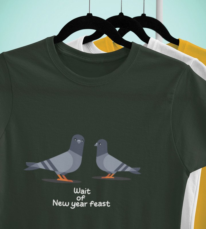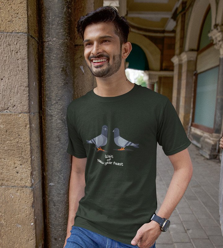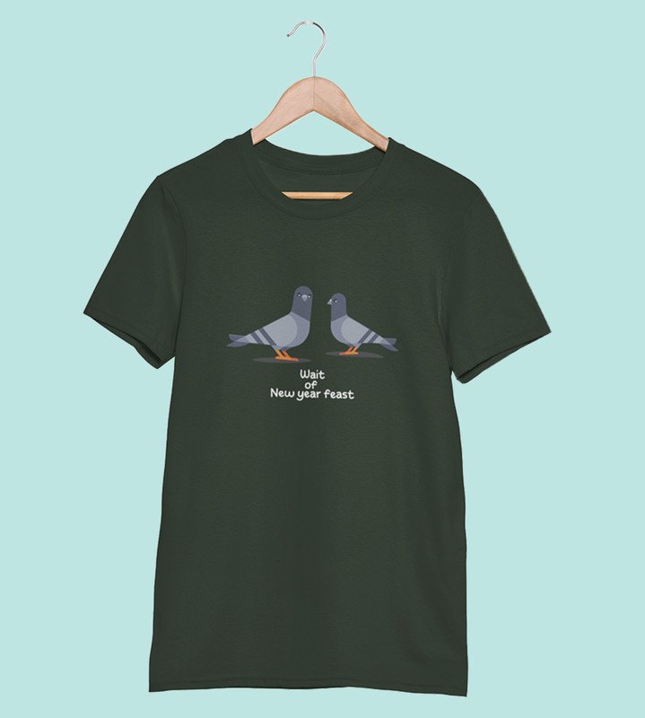 New Year Feast Green Graphic Printed T-shirt For Mens Boys