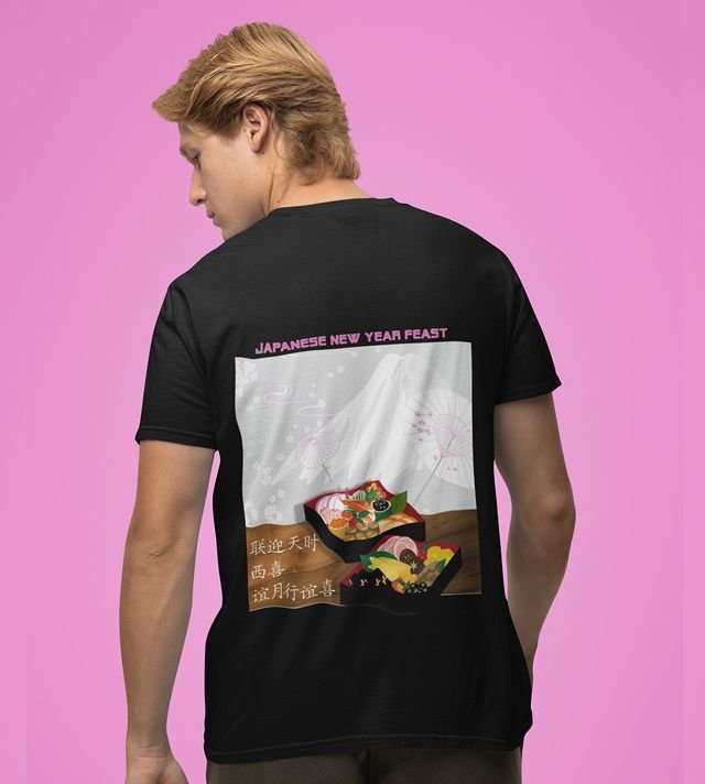 New Year Feast: Oshogatsu Spirit Graphic Printed Black T-shirt