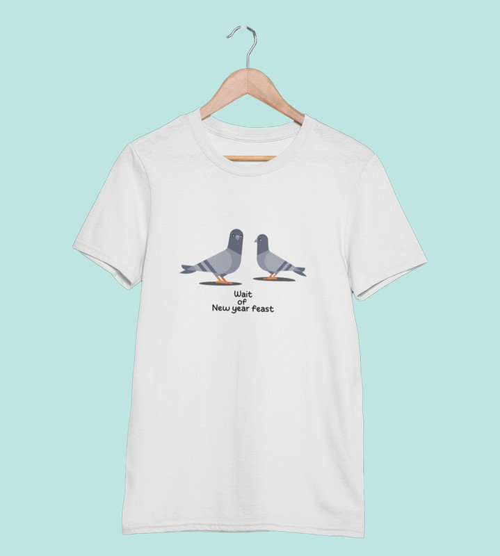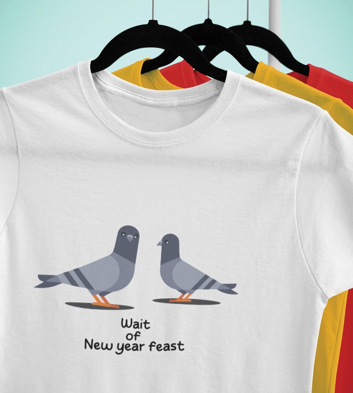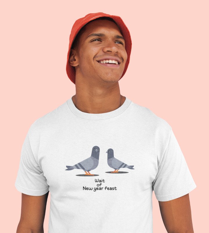New Year Feast White Graphic Printed T-shirt For Mens Boys