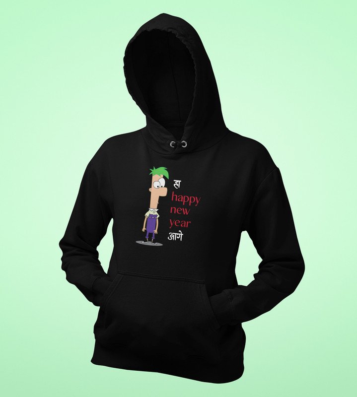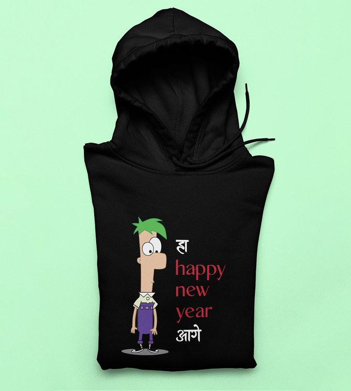 New Year Has Come, Black New Year Printed Hoodies For Mens