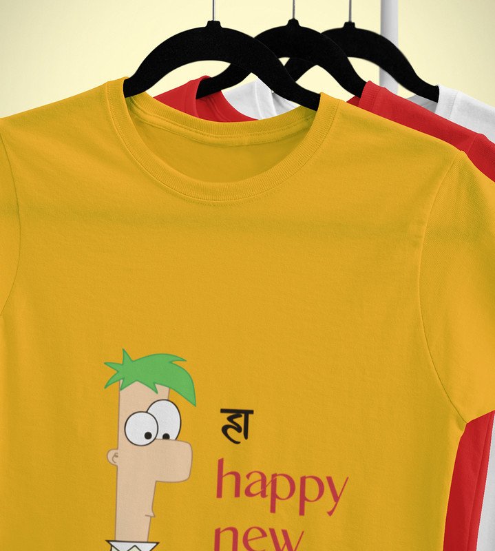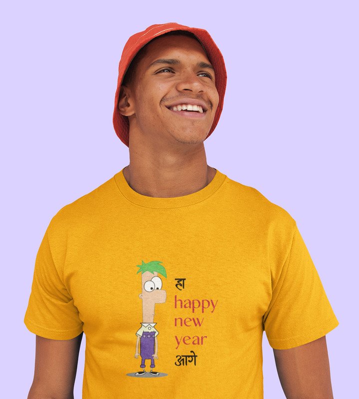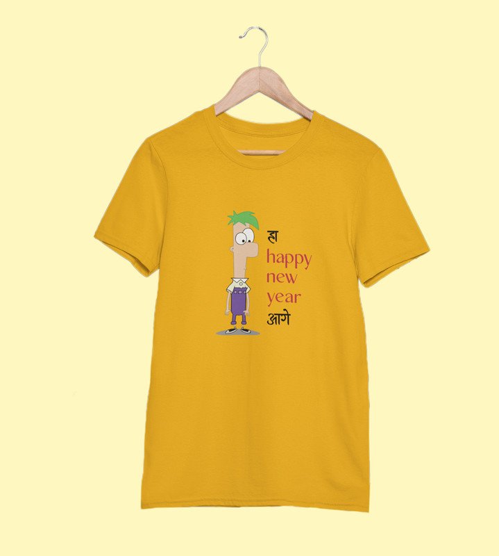 5. New Year Has Come Yellow New Year Printed T-shirt For Mens