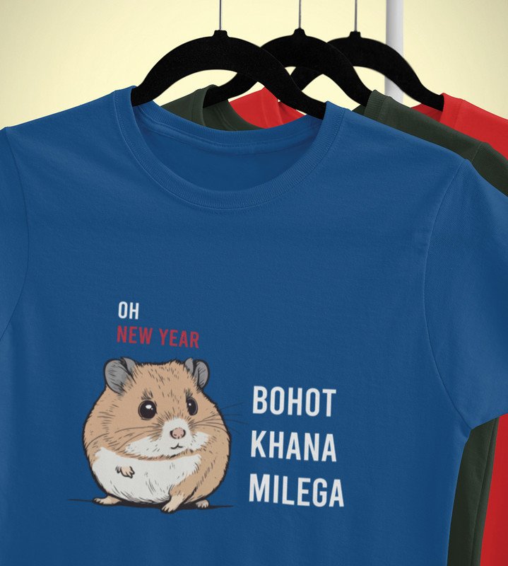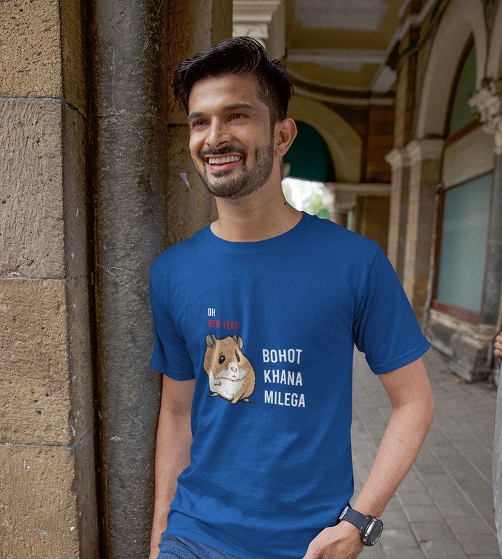 New Year More Food Blue Printed T-shirt For Mens On New Year Theme Best Gift For New Year