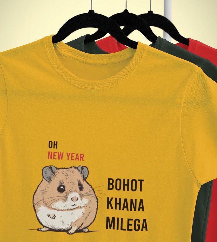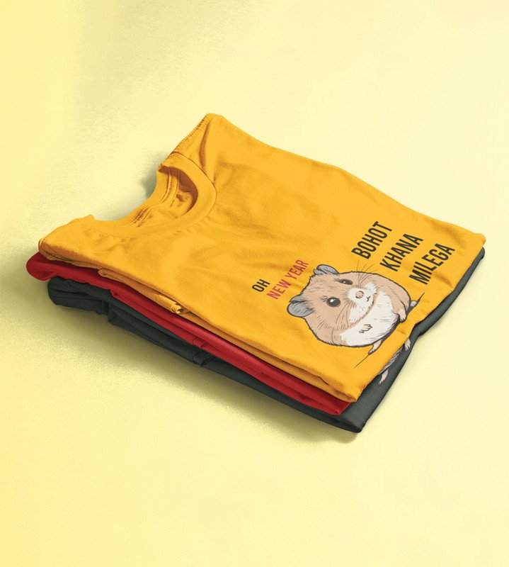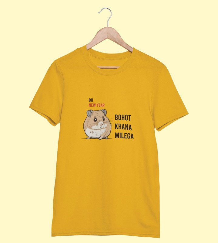 New Year More Food Yellow Printed T-shirt For Mens On New Year Theme Best Gift For New Year