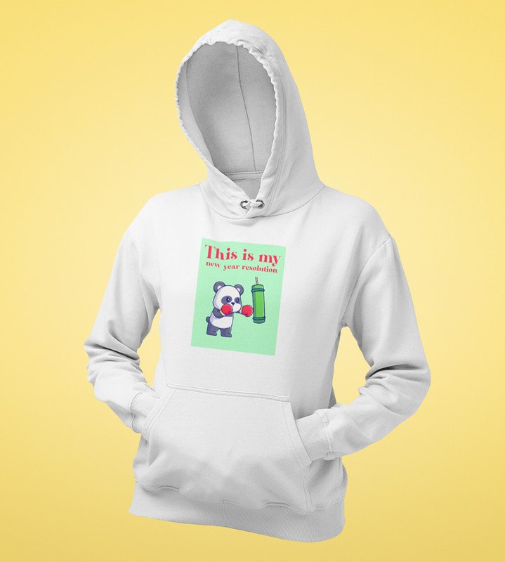 New Year New Resolution, White Men Printed Hoodies For Mens Boys