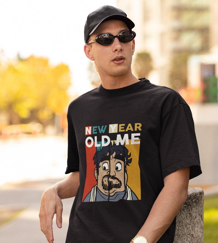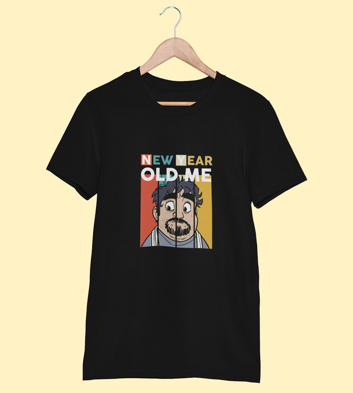 New Year Old Me Black New Year Printed T-shirt For Mens