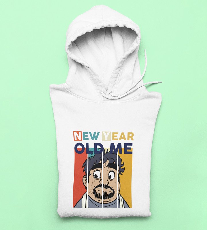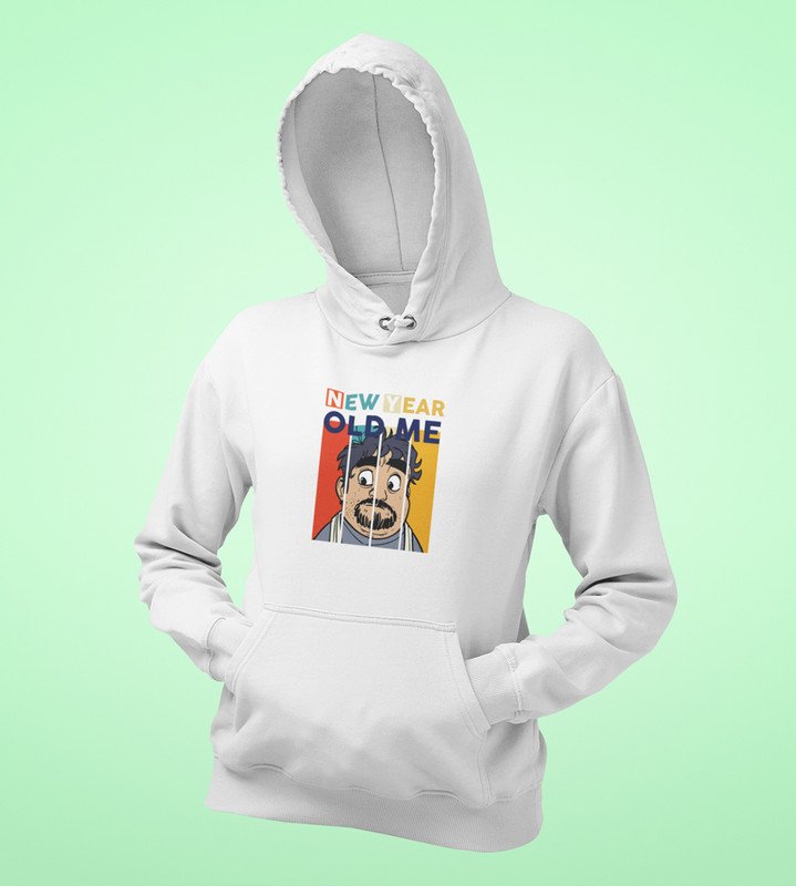 New Year Old Me, White New Year Printed Hoodies For Mens
