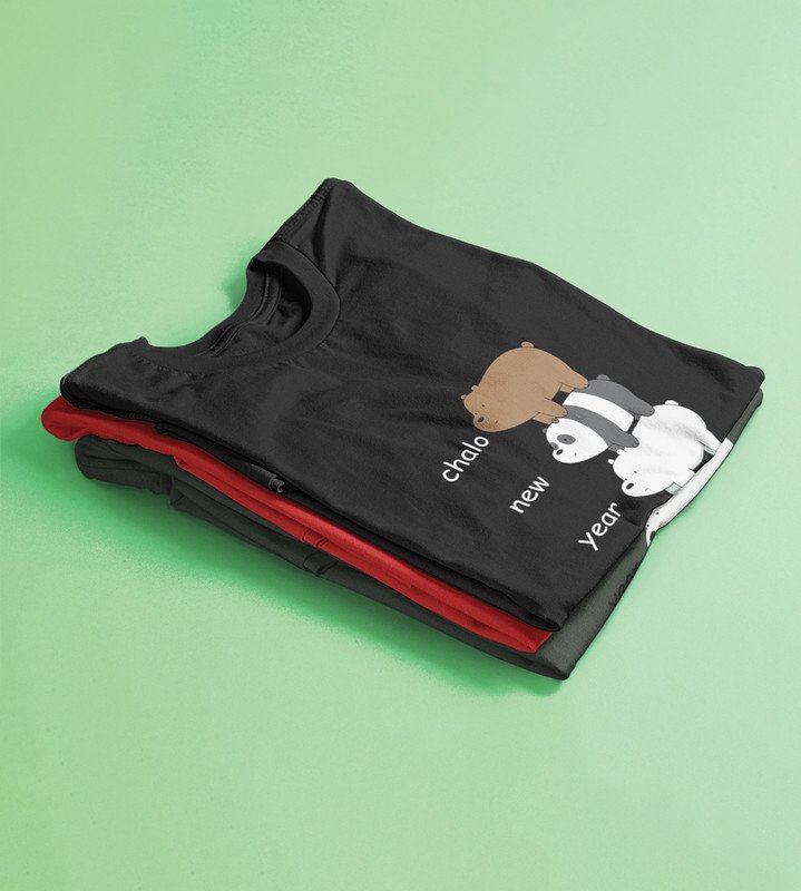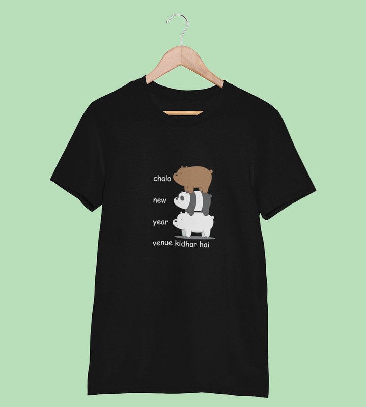 New Year Party Black Graphic Printed T-shirt For Mens Boys