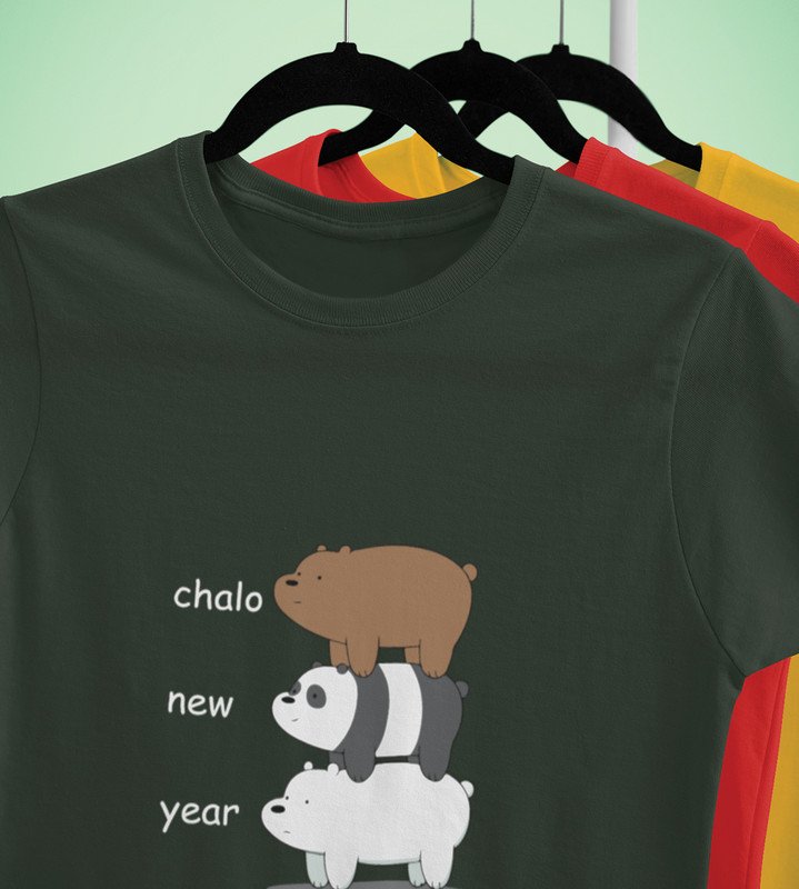 New Year Party Green Graphic Printed T-shirt For Mens Boys
