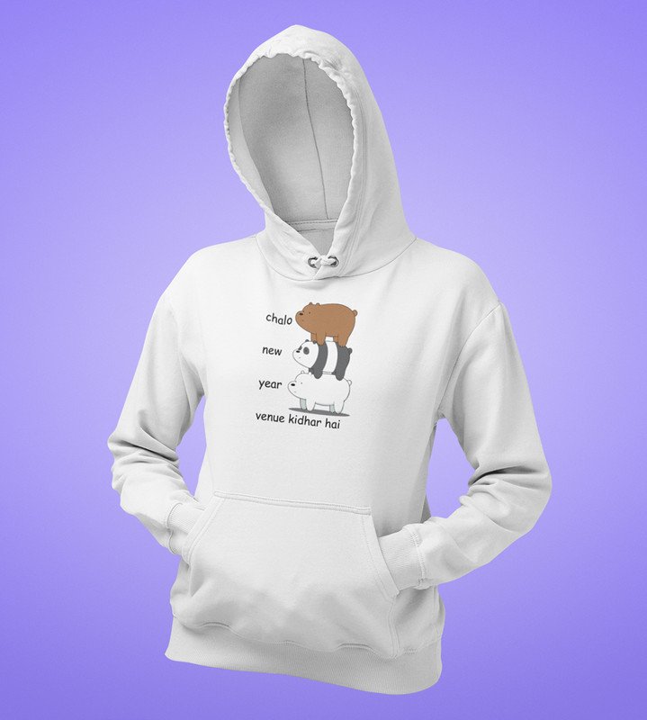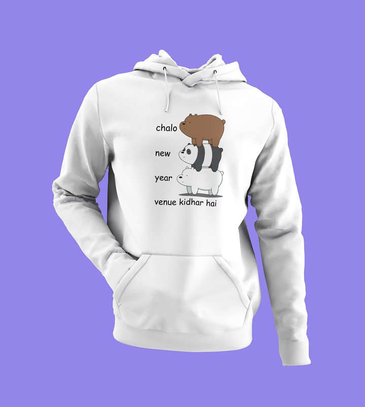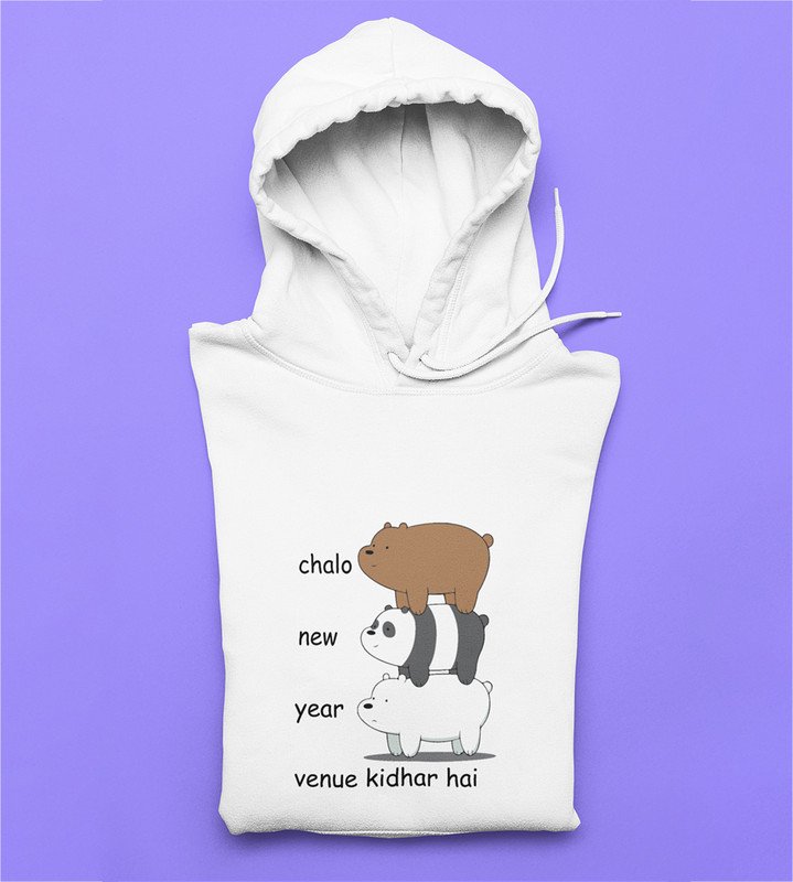 New Year Party, White Graphic Printed Hoodies For Mens Boys