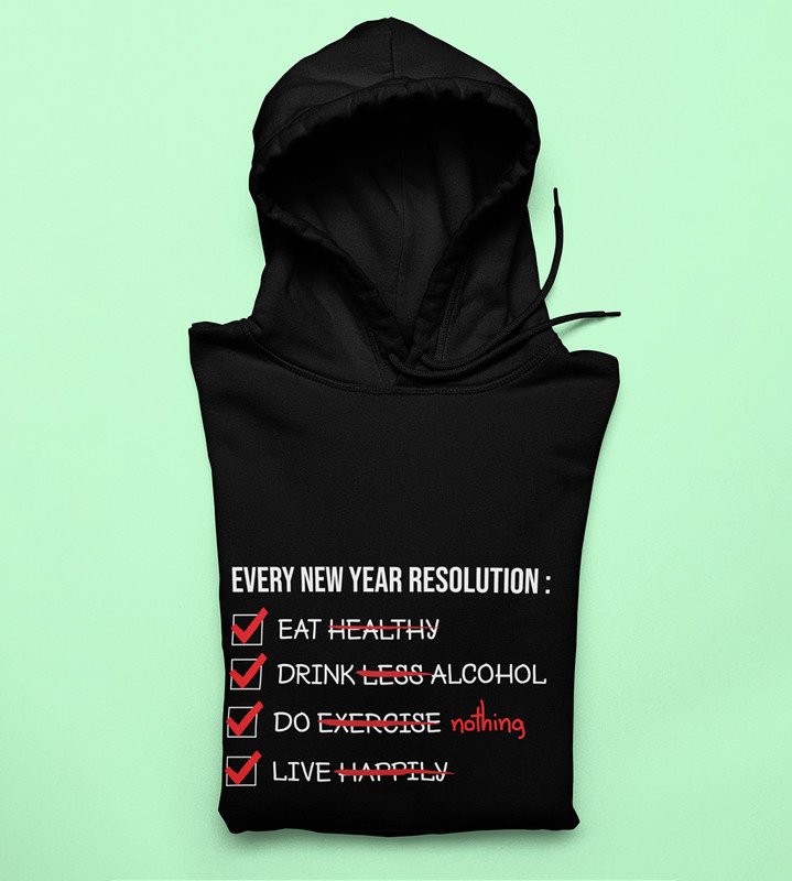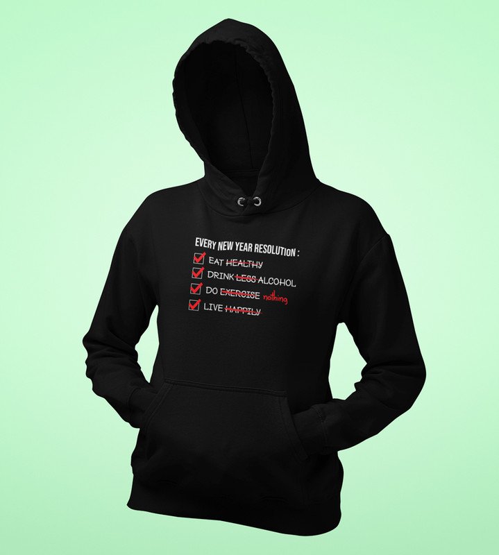 New Year Resolution, Black Men Printed Hoodies For Mens Boys