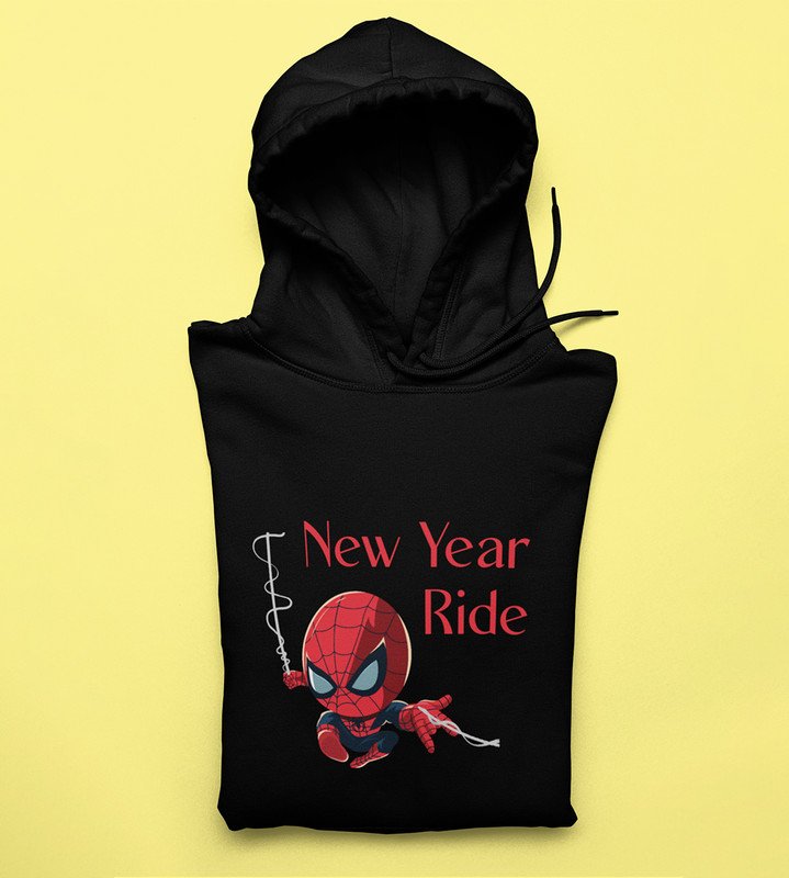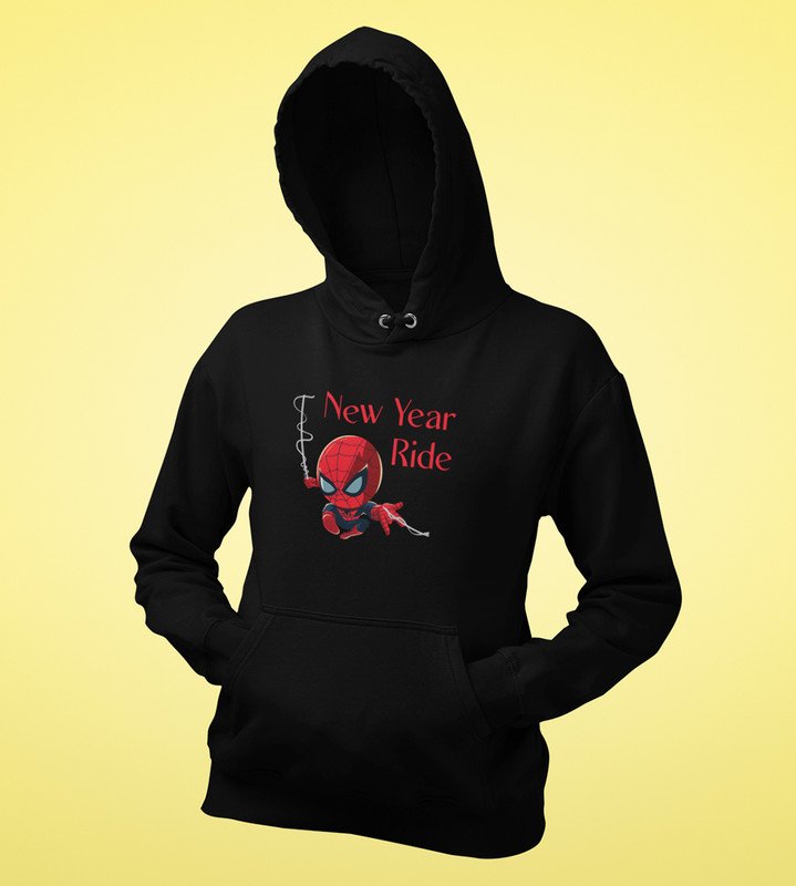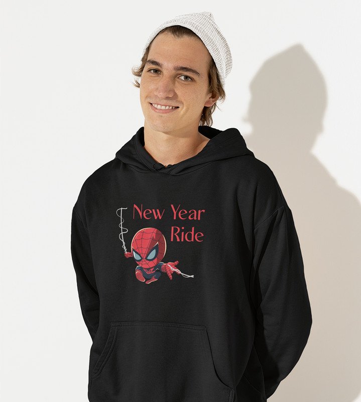 New Year Ride, BlackPrinted Hoodies For Mens On New Year Theme