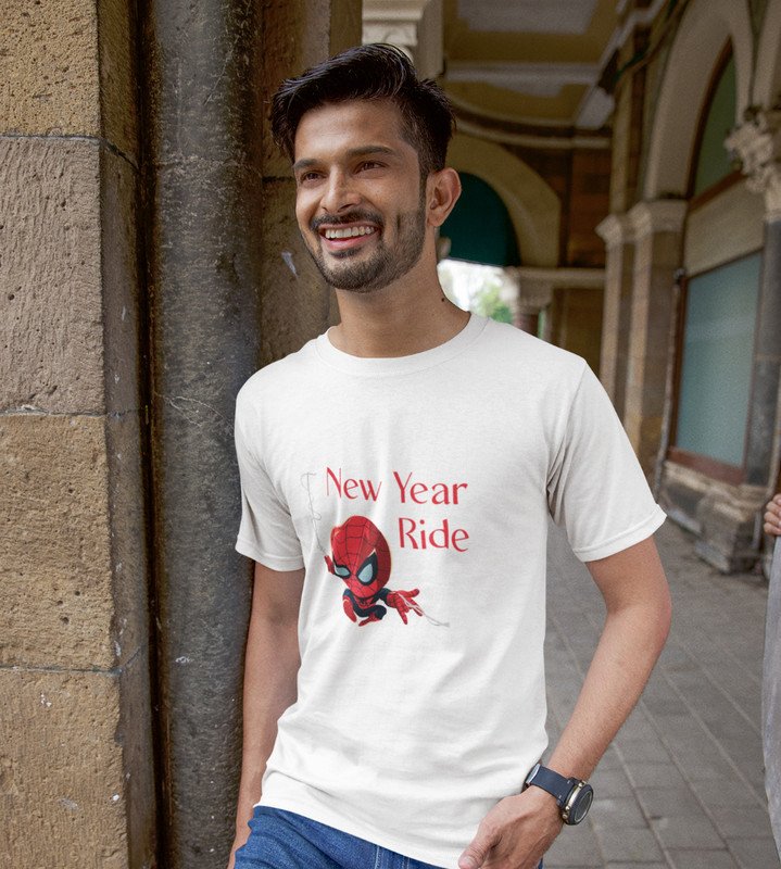 New Year Ride WhitePrinted T-shirt For Mens On New Year Theme
