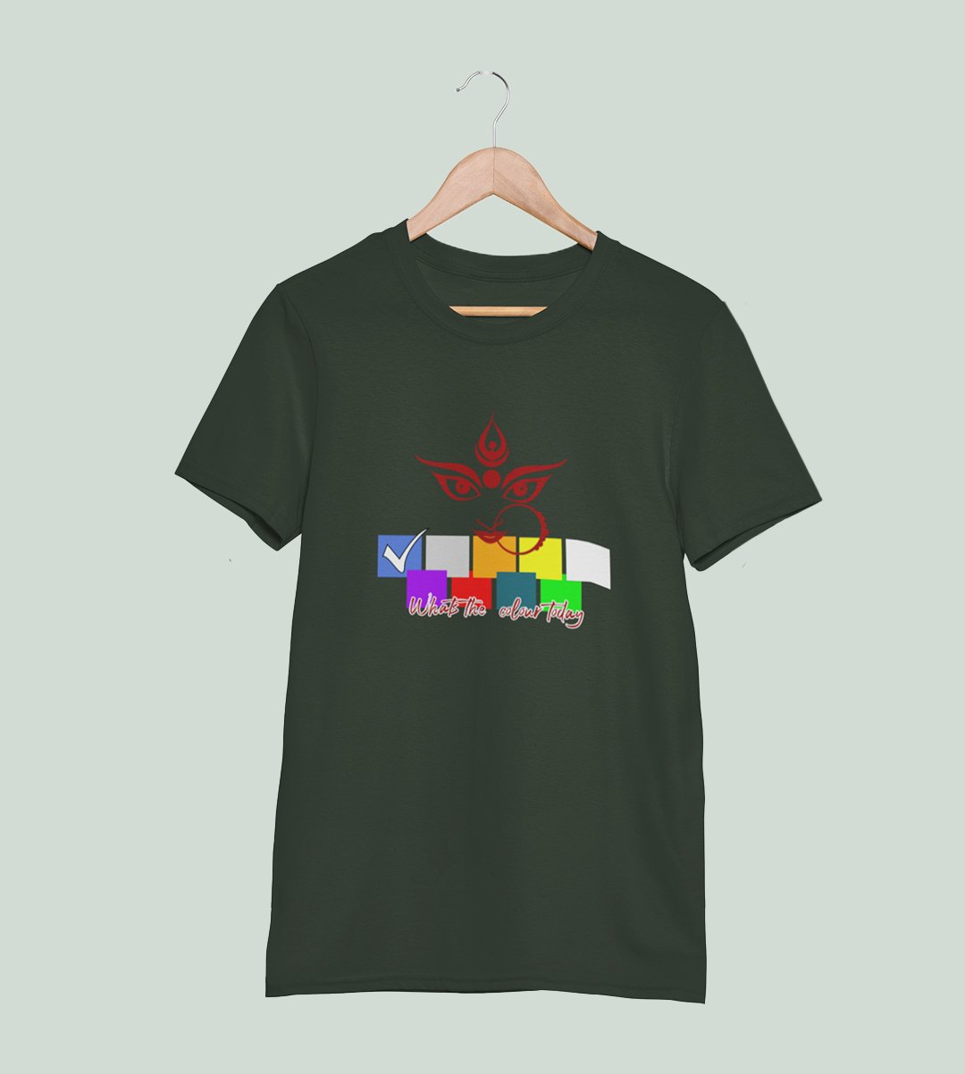 Nine day, nine colours printed unisex adults round neck cotton half-sleeve green tshirt specially for Navratri festival/ Durga puja