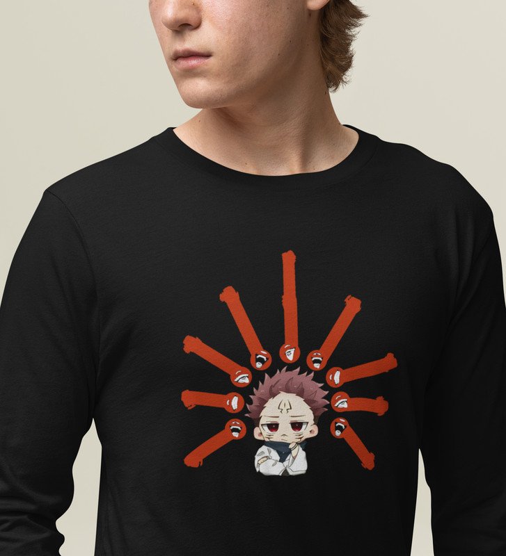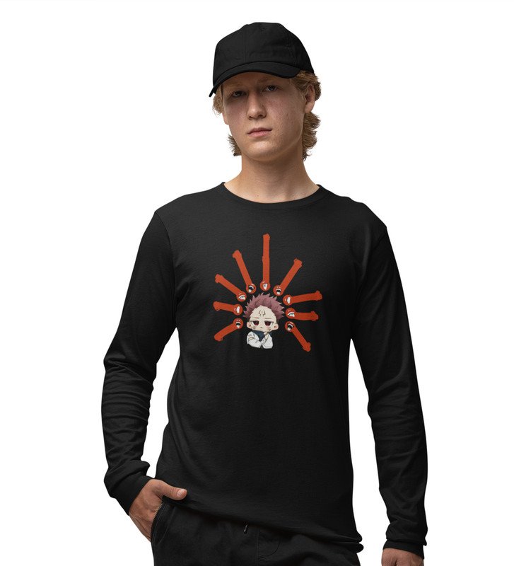 Nine Faced Anime Cotton Black Full Sleeves Tshirt For Mens and Boys