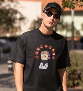 Nine Faced Anime Cotton Black Tshirt For Mens and Boys