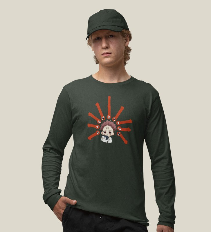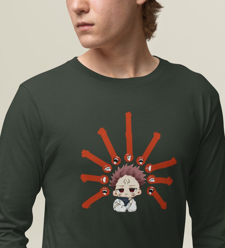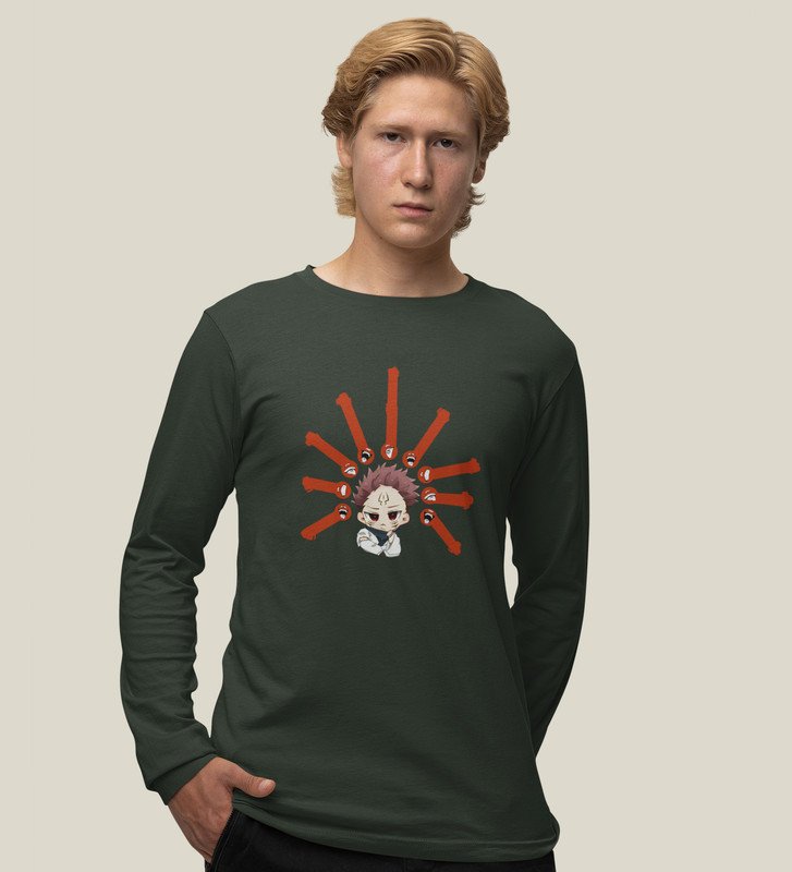 Nine Faced Anime Cotton Green Full Sleeves Tshirt For Mens and Boys