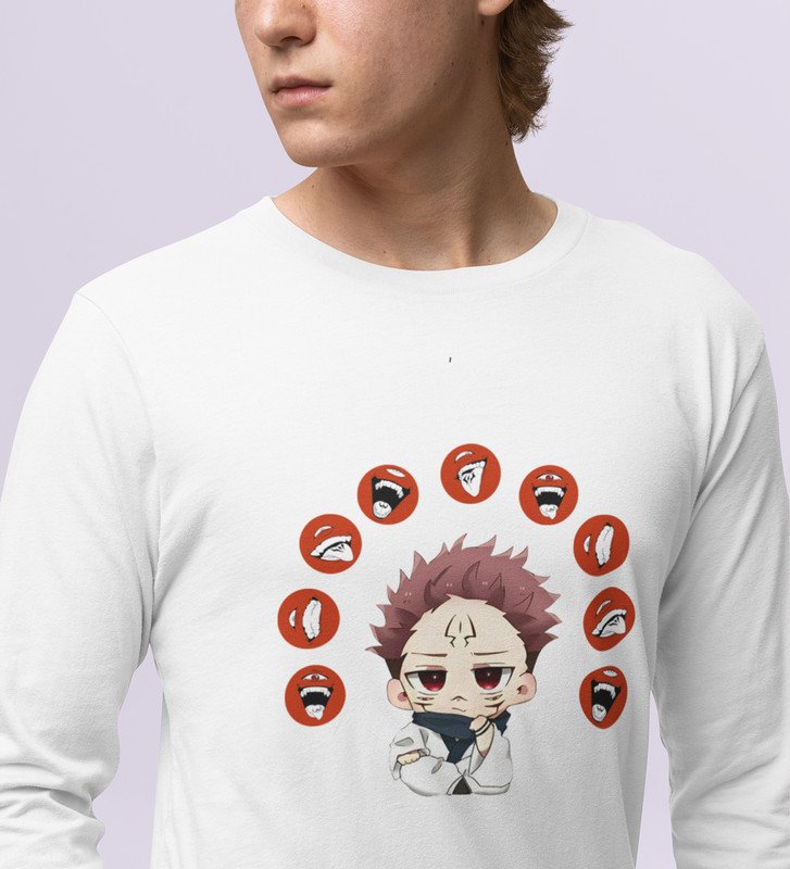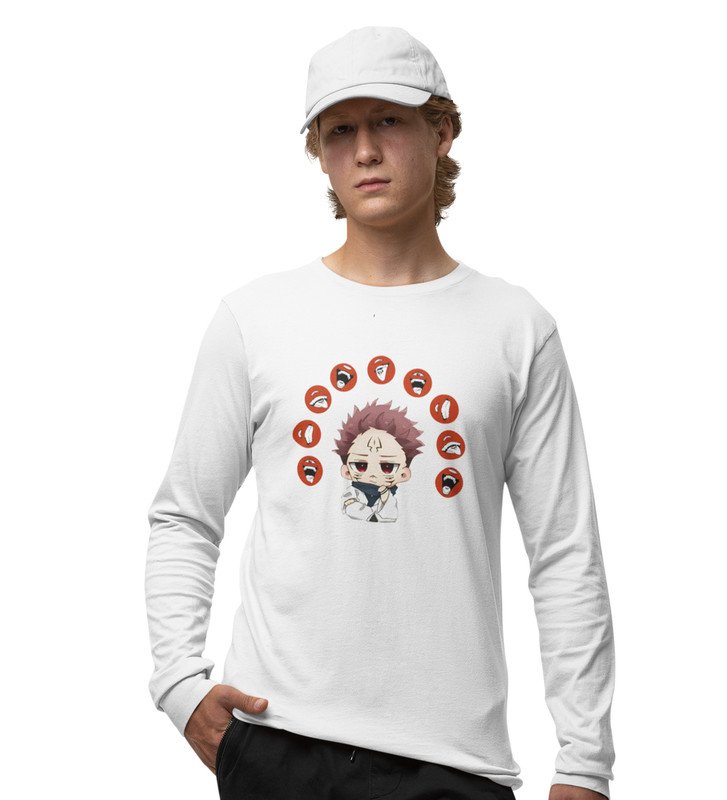 Nine Faced Anime Cotton White Full Sleeves Tshirt For Mens and Boys