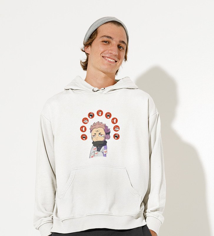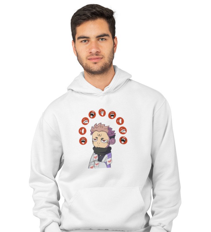 Nine Faced Anime Cotton White Hoodies For Mens and Boys