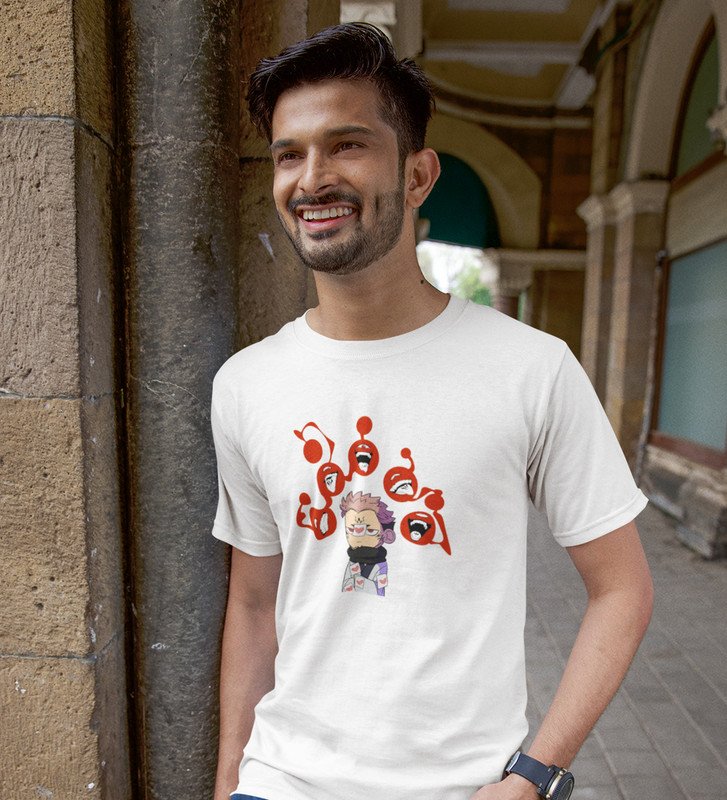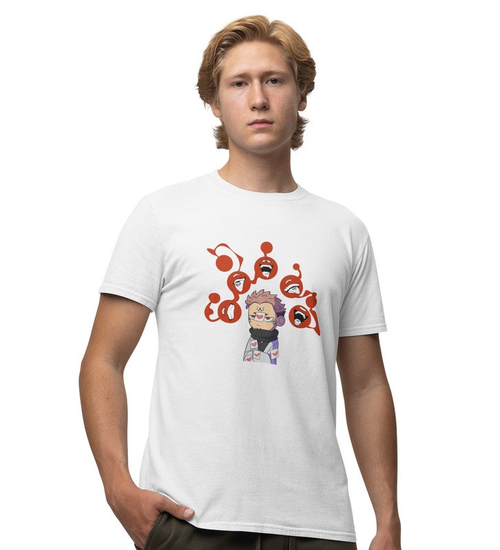 Nine Faced Itadori Cotton White Printed Tshirt For Mens and Boys